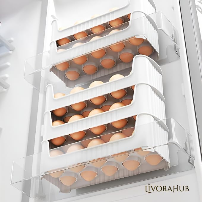 egg storage rack keeps eggs organized, visible, and safe, saves fridge space, easy to clean, durable design for kitchens.