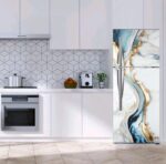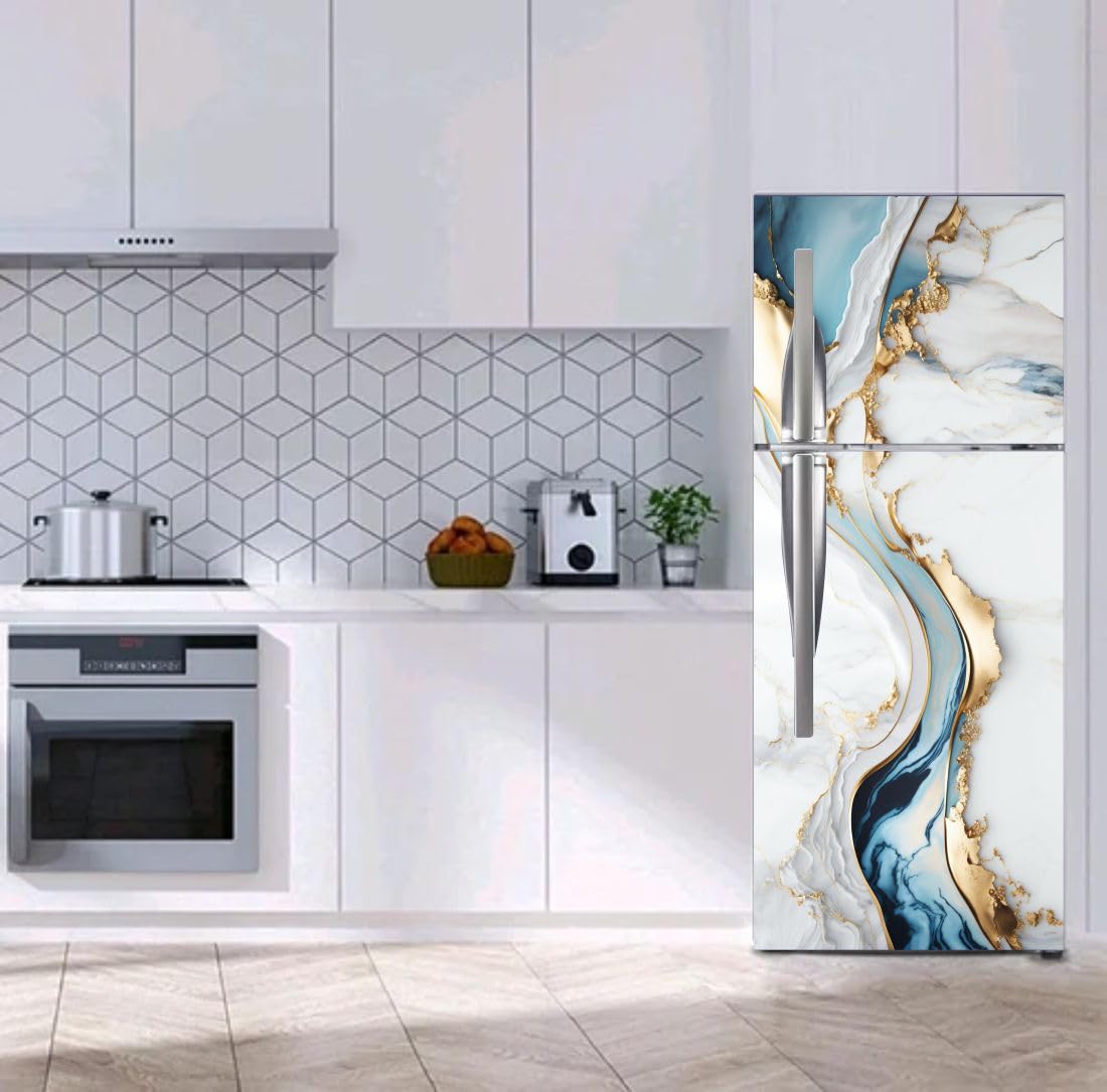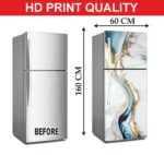 3D Floral Double Door Fridge Sticker | Waterproof Self-Adhesive Vinyl Refrigerator | Door Wrap for Kitchen Décor | Peel & Stick Fridge Cover (63 x 24 inch) (Marble Texture)