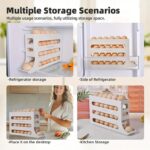 4 Tier Rolling Egg Dispenser Organizer | Stackable Slide-Out Egg Storage Rack Box for Refrigerator | Large Capacity, Space Saving, BPA-Free Sturdy Plastic Kitchen Egg Holder Tray