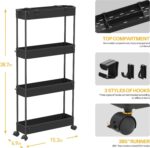 4 Tier Slim Rolling Trolley Organizer Storage Rack with Wheels – Kitchen Trolley Organizer, Plastic Shelf Rack for Storage, Bathroom Trolley, Utility Cart for Fridge Side & Narrow Spaces
