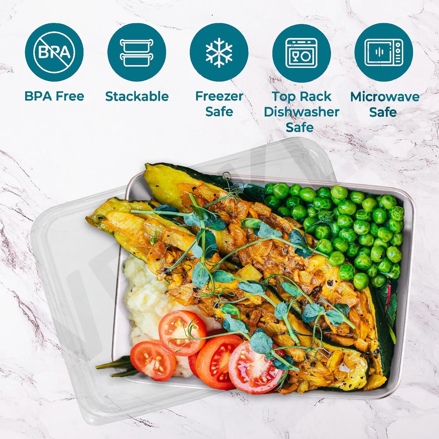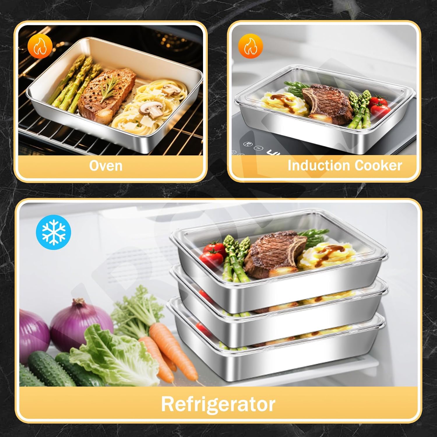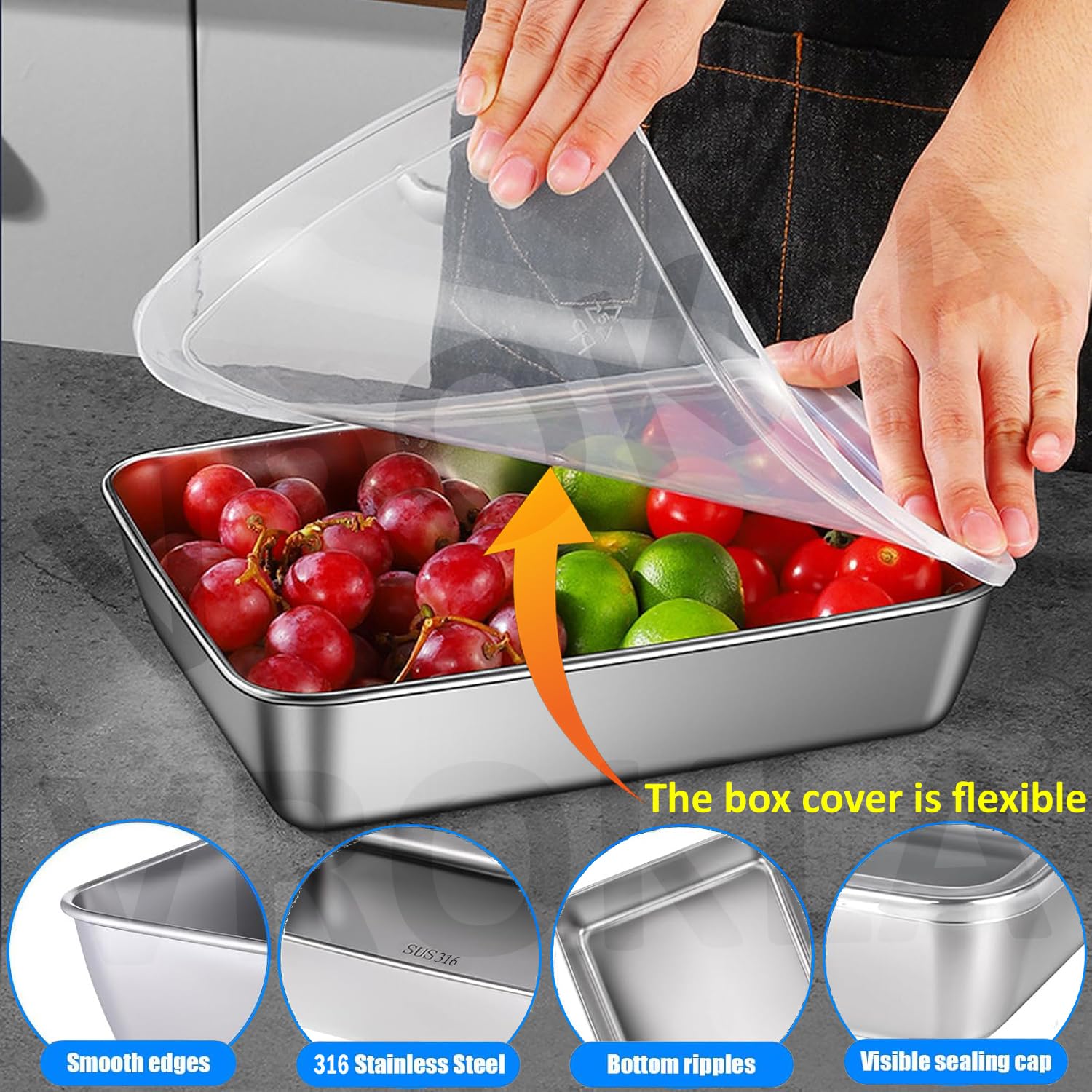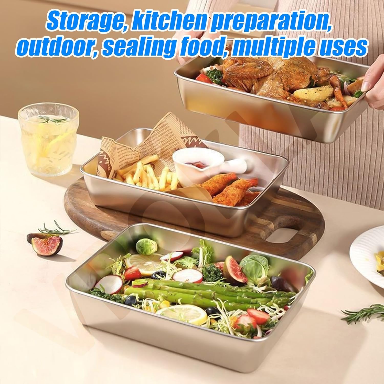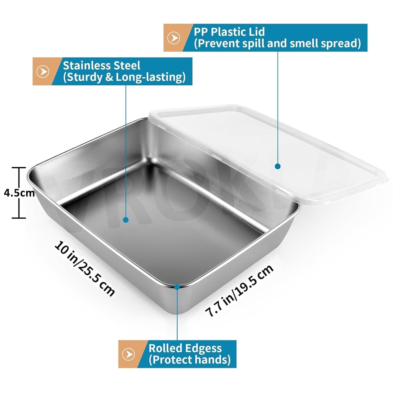 VROKLA Stainless Steel Food Storage Containers with Clear Lids, Stackable Snack Storage Boxes, Food Serving and Baking Tray for Kitchen, Refrigerator or Picnic, BBQ Party, Office, Gym Lunch
