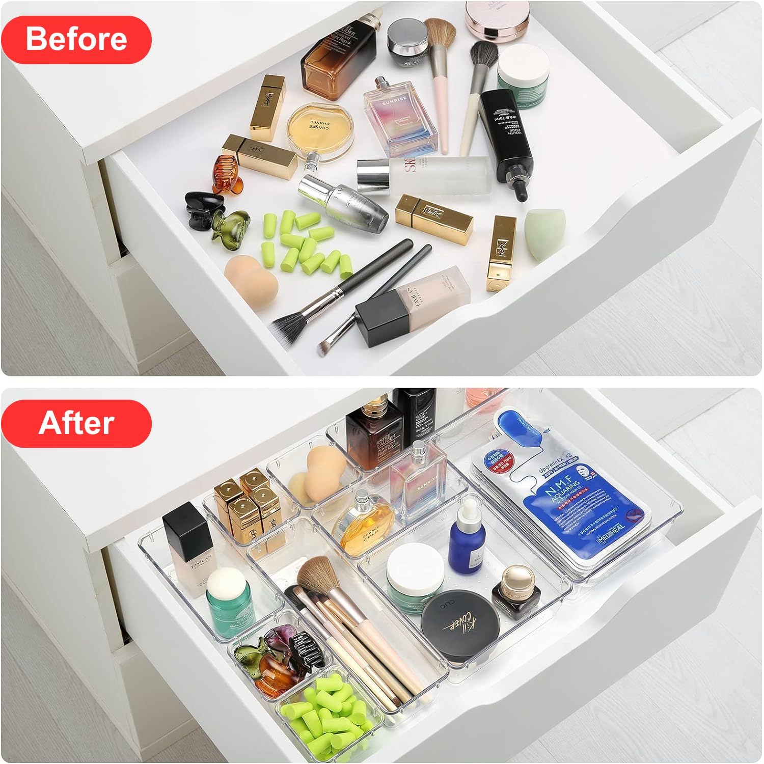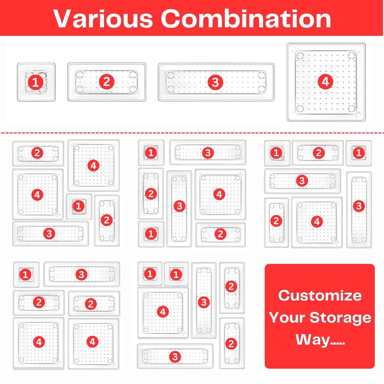 Customize and Stackable Trays: These drawer organizers are easy to wipe clean and stackable, Individual organizer cases can be stacked and sorted out your space easily. Also set it or customize the storage bin according to the Drawer or you need, this will save much space and organize well.