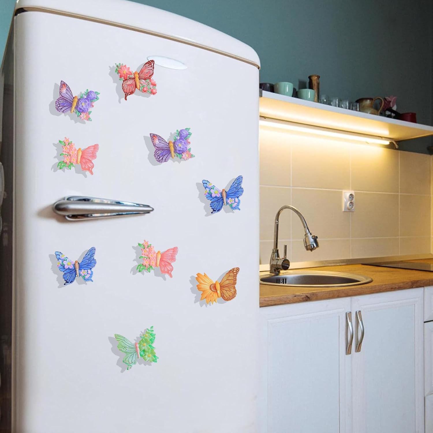 Enhance your space with these 9PCS Cute Butterfly Fridge Magnets, designed to bring a touch of charm and functionality to your kitchen, office, or home. Each magnet features a delightful butterfly shape with a vibrant flower pot design, adding a playful and decorative element to any metal surface. Crafted from durable natural resin, these magnets are built to last, resisting chipping and fading over time. The strong magnetic backing ensures a secure hold for notes, photos, or lightweight decorations. Perfect for organizing reminders or simply adding a decorative touch, these magnets are versatile and practical. Packaged as a set of nine, they make a thoughtful gift for any occasion, combining aesthetic appeal with everyday utility.