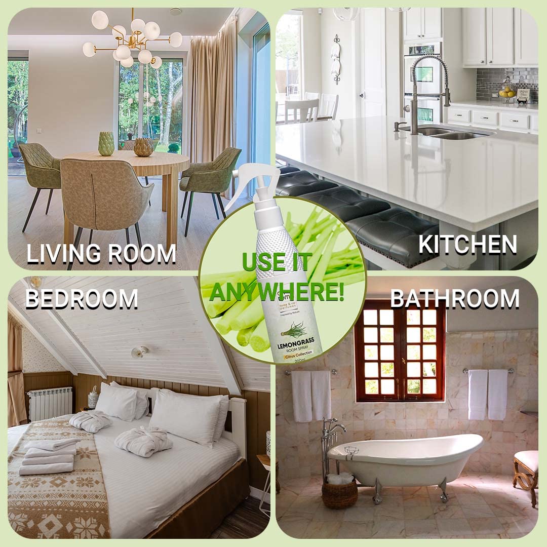 Long-lasting natural smelling home fragrances that can be sprayed as a room freshener in all spaces (e.g. living room, bedrooms, bathroom, dinning room, kitchen, wardrobes, shoe racks etc.)