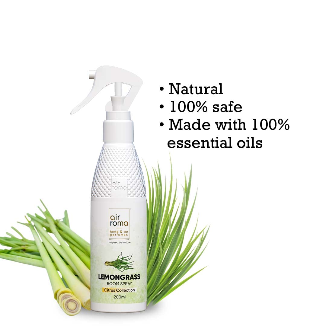 AIR-ROMA Plastic Lemon Grass Air Freshener Spray (200ml) | Long-Lasting Odour Eliminator for Home, Hotel & Office