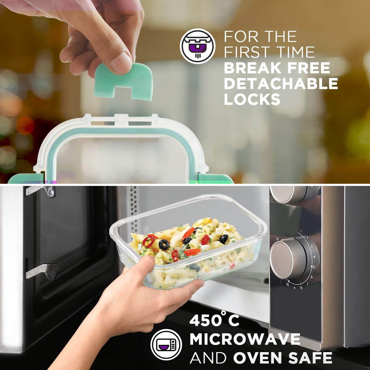 ✔️I AM MICROWAVE SAFE GLASS CONTAINER- Enjoy your hot food by placing me in a microwave. Don’t worry, like other containers, I will not release any toxic chemicals whatsoever into your food.