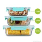 Allo FoodSafe Glass Containers with Lids with Break Free Lock, Oven Microwave Safe Containers,Borosilicate Meal Prep Glass Food Storage Containers for Kitchen, Set of 3 370ml, 640ml, 1040ml