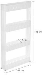Package Contents:- 1 x 4 Layer Slim Side Space Saving Storage Organiser With Wheels