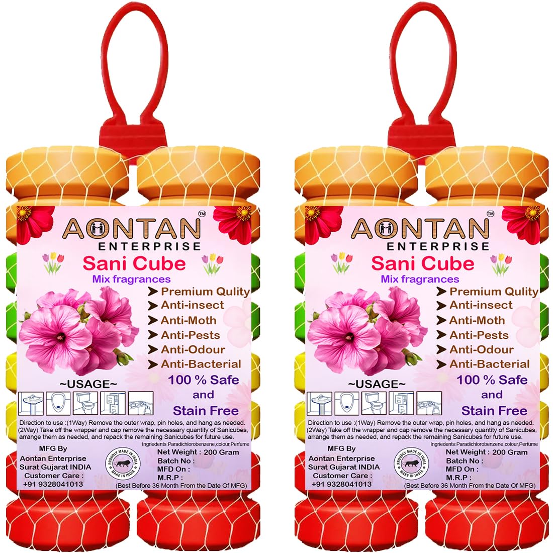 Pack of 2 bathroom freshener fragrance blocks Each block weighs 200 grams Ideal for freshening up toilets, bathrooms, shoe racks, and urinals Fragrance blocks come in a convenient cube shape for easy placement Sani cube napthalene balls provide long-lasting freshness