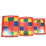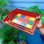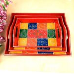 Serving Platters are the most essential element in the kitchen. They are integral parts of kitchenware specially if there’s a party or any get together in your house. These unique tray set are a must-have for your dining and serving needs, giving a rich and exquisite feel to your kitchen & home. These are Made of wood and hand painted with an ensemble of bright, warm shades which gives them a traditional look. This Tray Set reflects the artistic brilliance and adds elegance to your home decor.