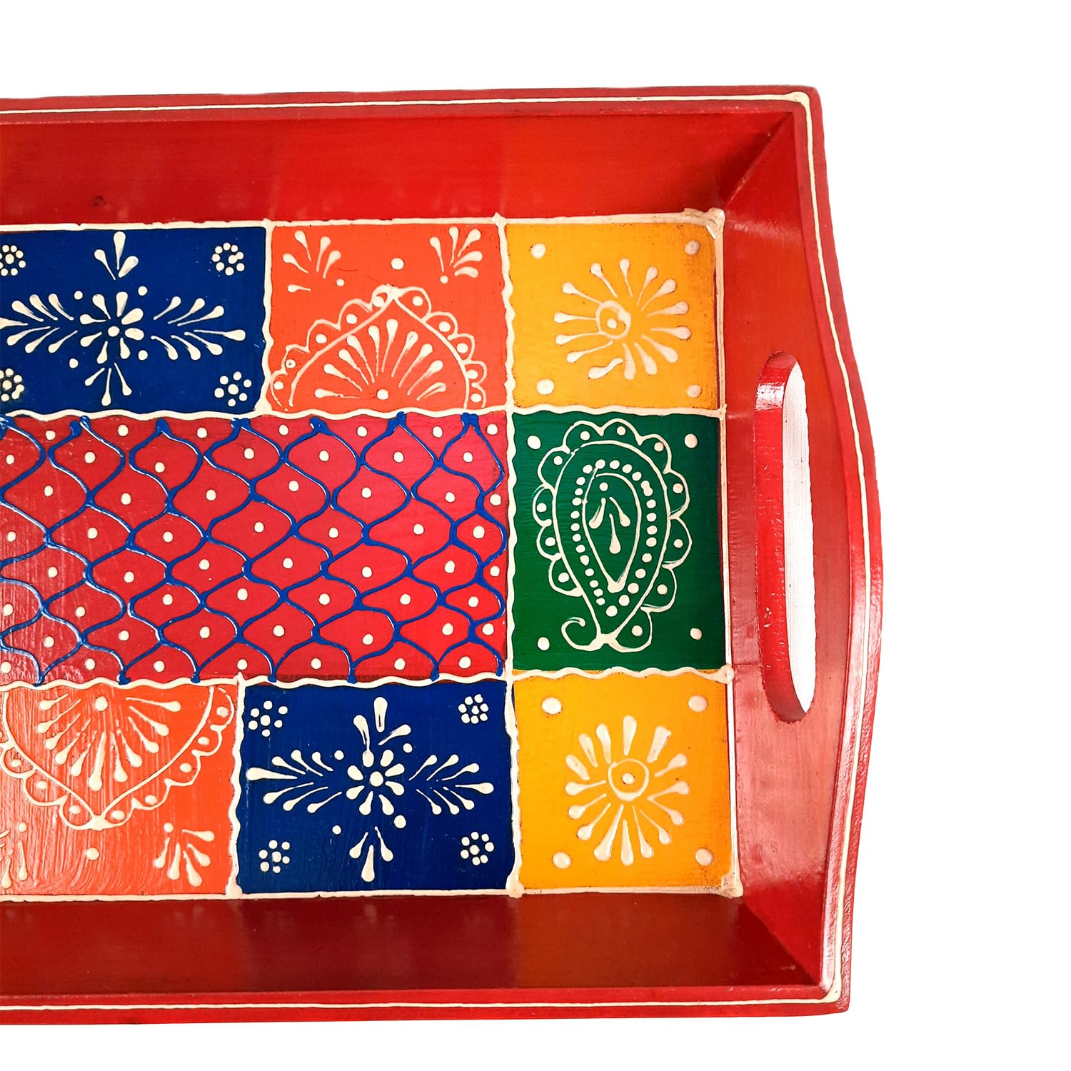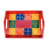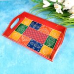 Tray is an necessary household item for every home. Serve your guests in this beautiful handcrafted and hand painted tray. Made of wood, its beautiful designs would brighten up your table decor. Bring this elegant serving tray to enhance your way of serving to your guests. This provides a rich and exquisite feel to your kitchen & home. It is used for a convenient carrying & serving food and beverages to your guests.