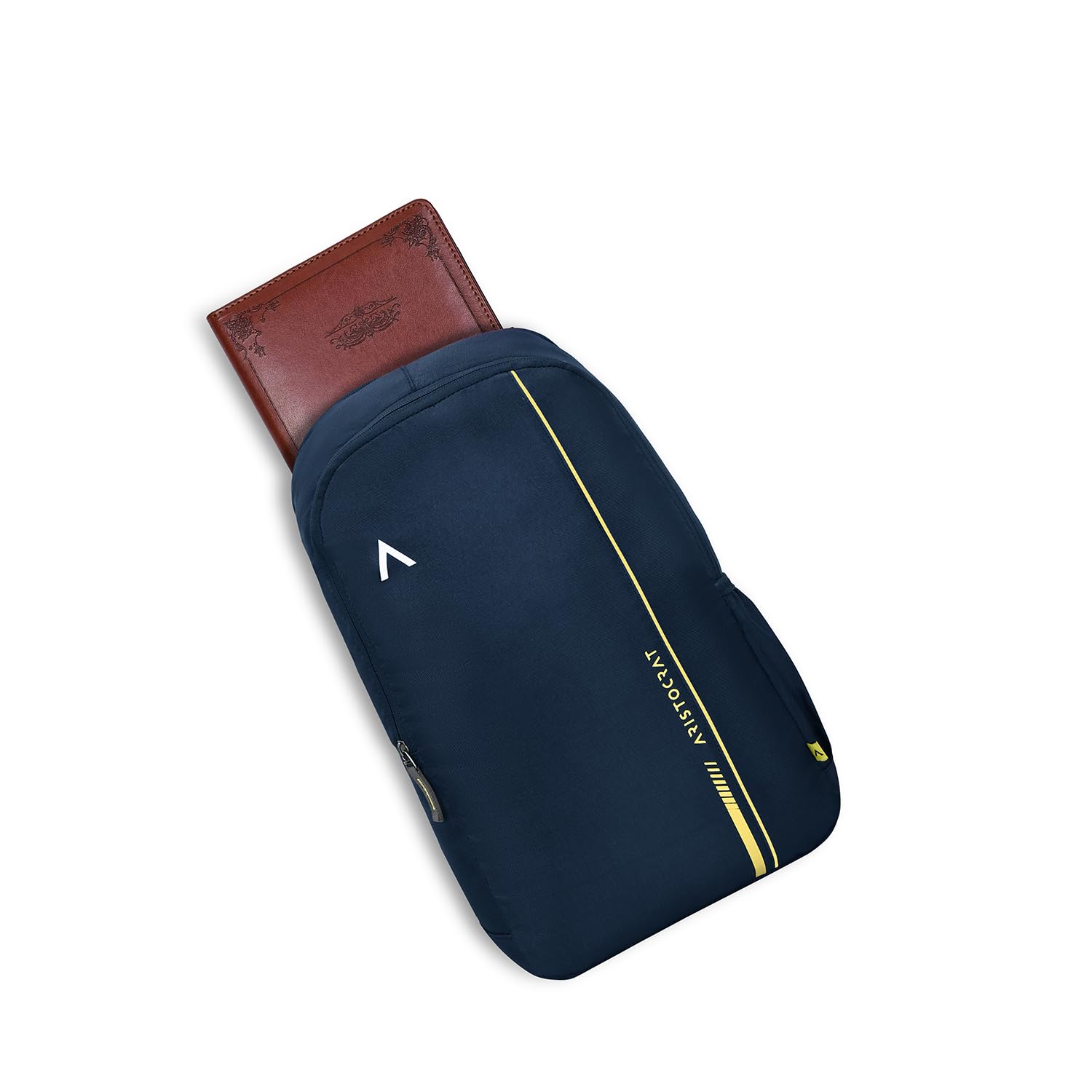 Aristocrat Nova 15L Laptop Backpack for Men & Women with Bottle Pocket | Padded Shoulder Straps, Multi Compartments | Travel & College Bag | Dark Blue