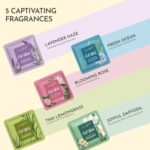 Set of 5 Fragrances: This assorted pack includes five refreshing variants: Joyful Daffodil, a bright floral blend with a fruity twist; Lavender Haze, a soothing floral with calming herbal notes; Ocean Fresh, a crisp marine fragrance that evokes cool sea breezes; Thai Lemongrass, a vibrant and zesty citrus-herbal aroma; and Blooming Rose, a sweet and delicate floral scent perfect for everyday freshness.
