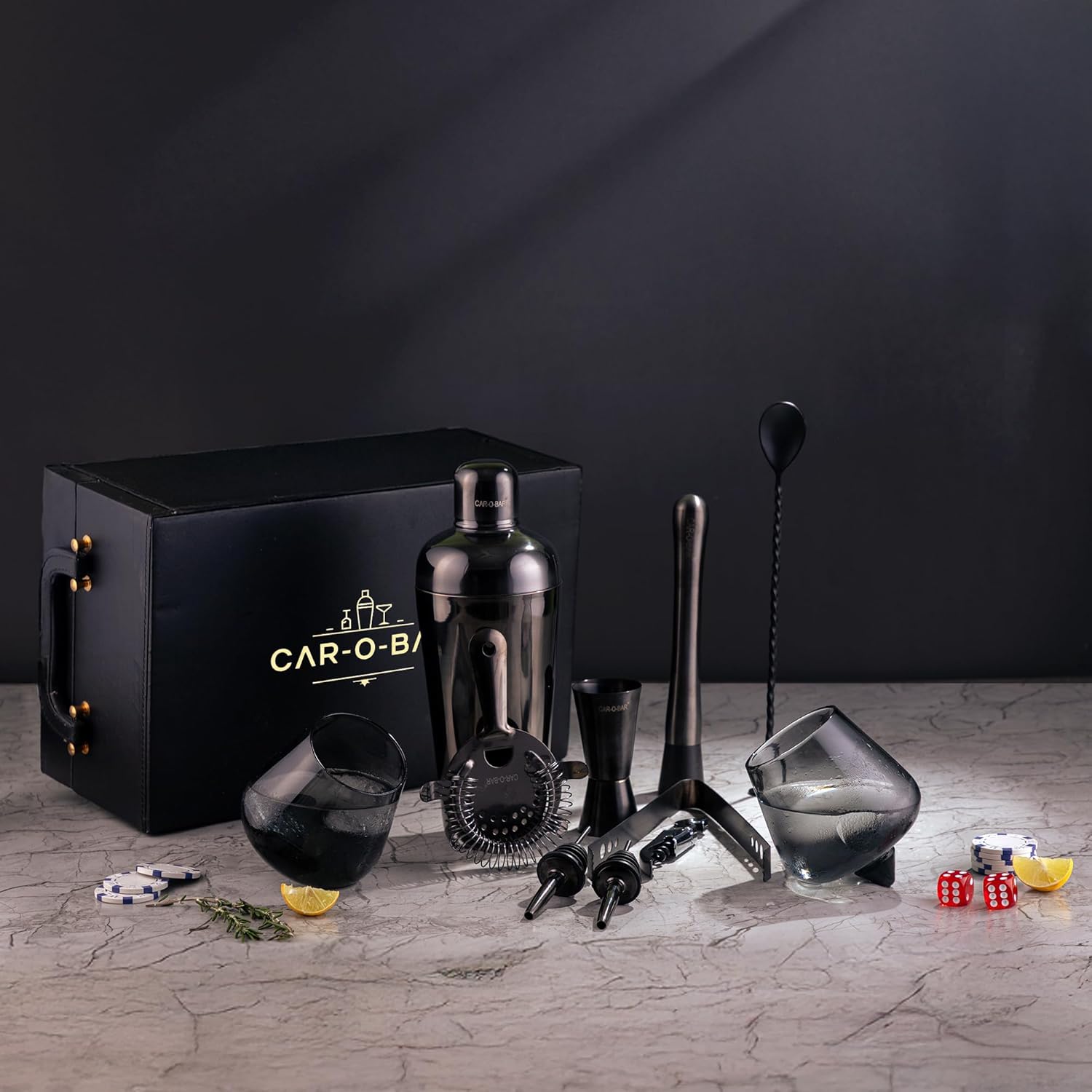 Shake, stir, and pour like a professional with our top-of-the-line bar set, bar accessories and Drinking Glasses. Perfect for crafting any cocktail—from classics like martinis to modern concoctions or enjoying Whiskey on the rocks with our Steel/Whiskey Ice Cubes. Car-O-Bar Bar sets/Cocktail Kits and Ice Buckets with Tong are made from food grade stainless steel, they are resistant to rust, corrosion, and very easy to clean.