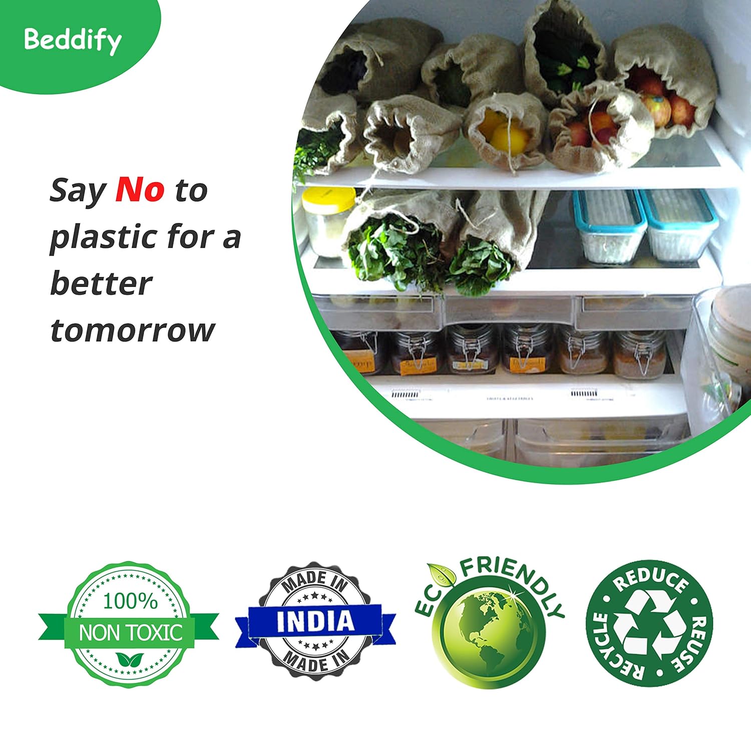 Storing your fruits and vegetables to keep them fresh for a long time is now made easier with Beddify’s storage bags. Created to enhance the life of fruits, veggies, and groceries, these bags will keep the items intact and fresh for a long time. It is high-time when we switch to sustainable alternates to plastic and what better than 100% cotton? Go ahead and you will never look back to the old ways of storing fruits and vegetables.