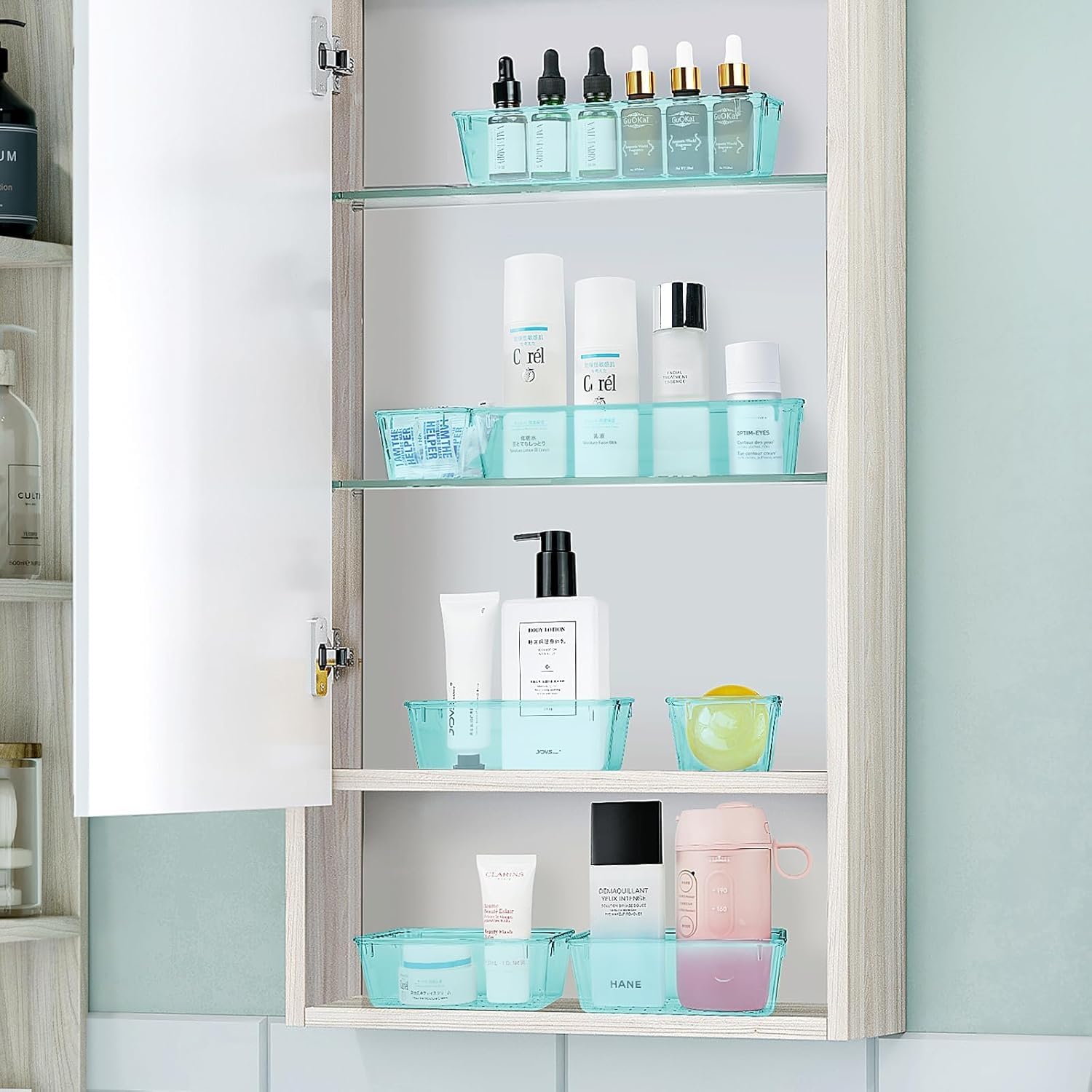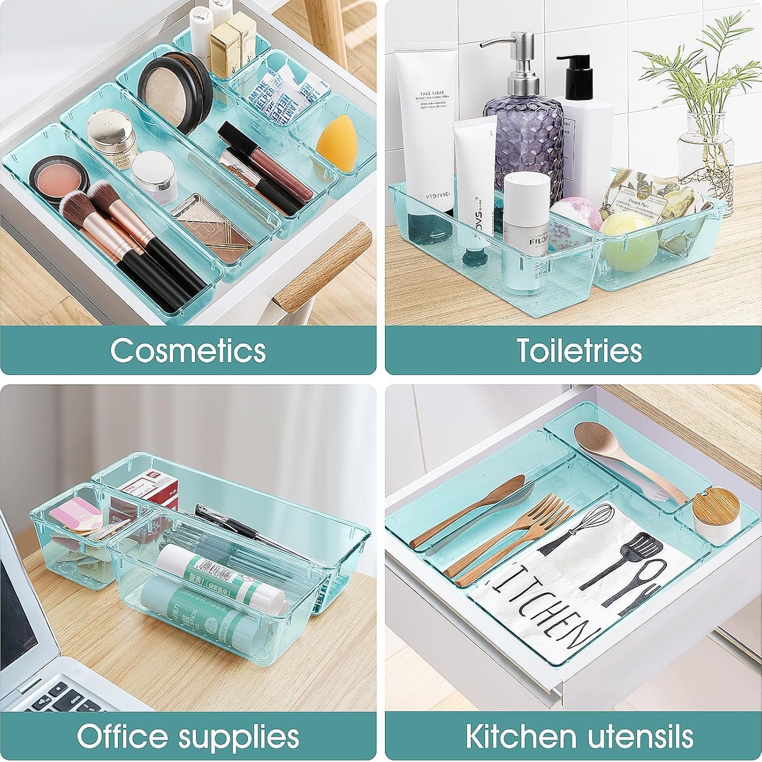 Boniry Drawer Storage Organizer | Drawer Organizer Trays Set Clear Plastic Storage Bins Bathroom Tray Dividers Acrylic Organizer | Dressing Table Organizer (Sea Blue, 25 Pcs)