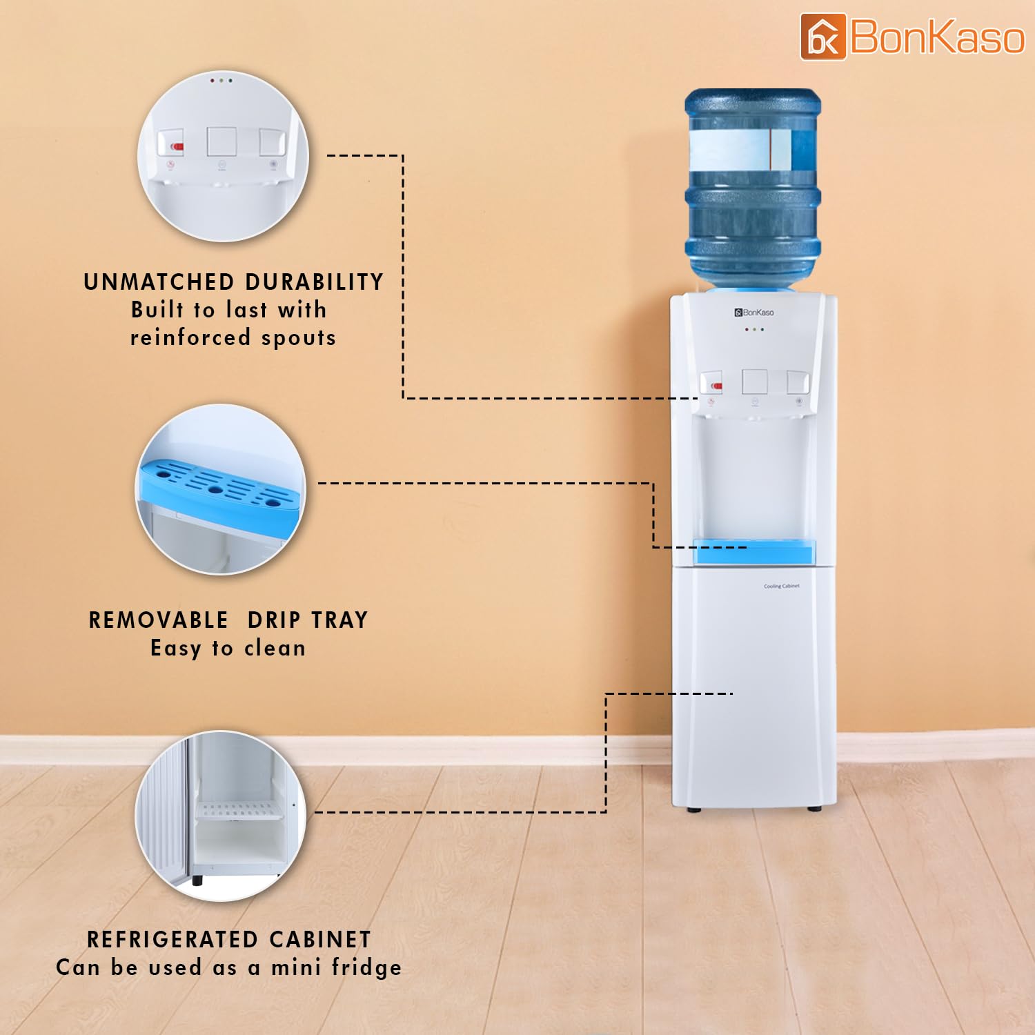 BonKaso Blueprint Hot & Cold Water Dispenser 21C Top Loading with Refrigerator – White/Blue, 20 l
