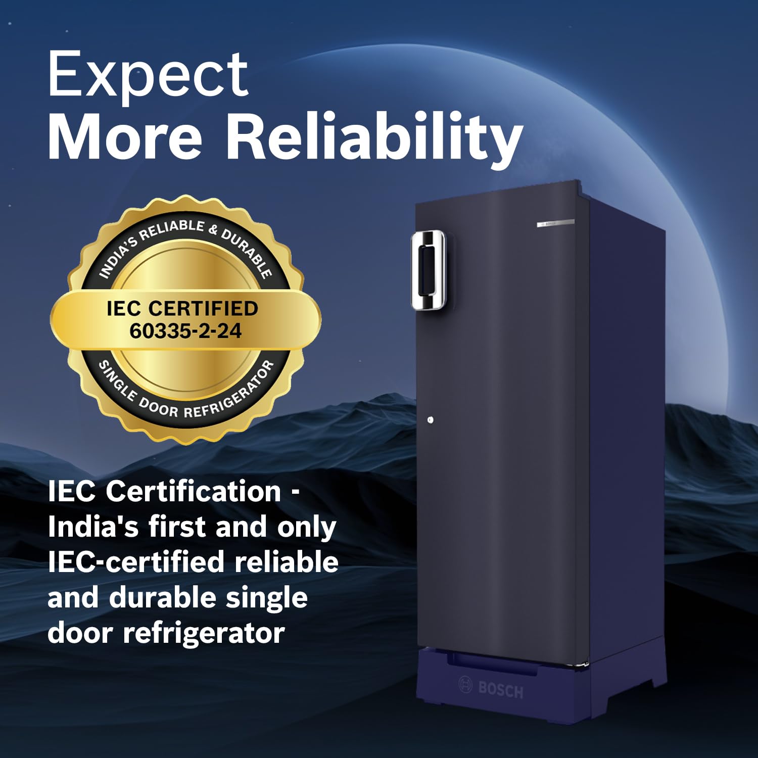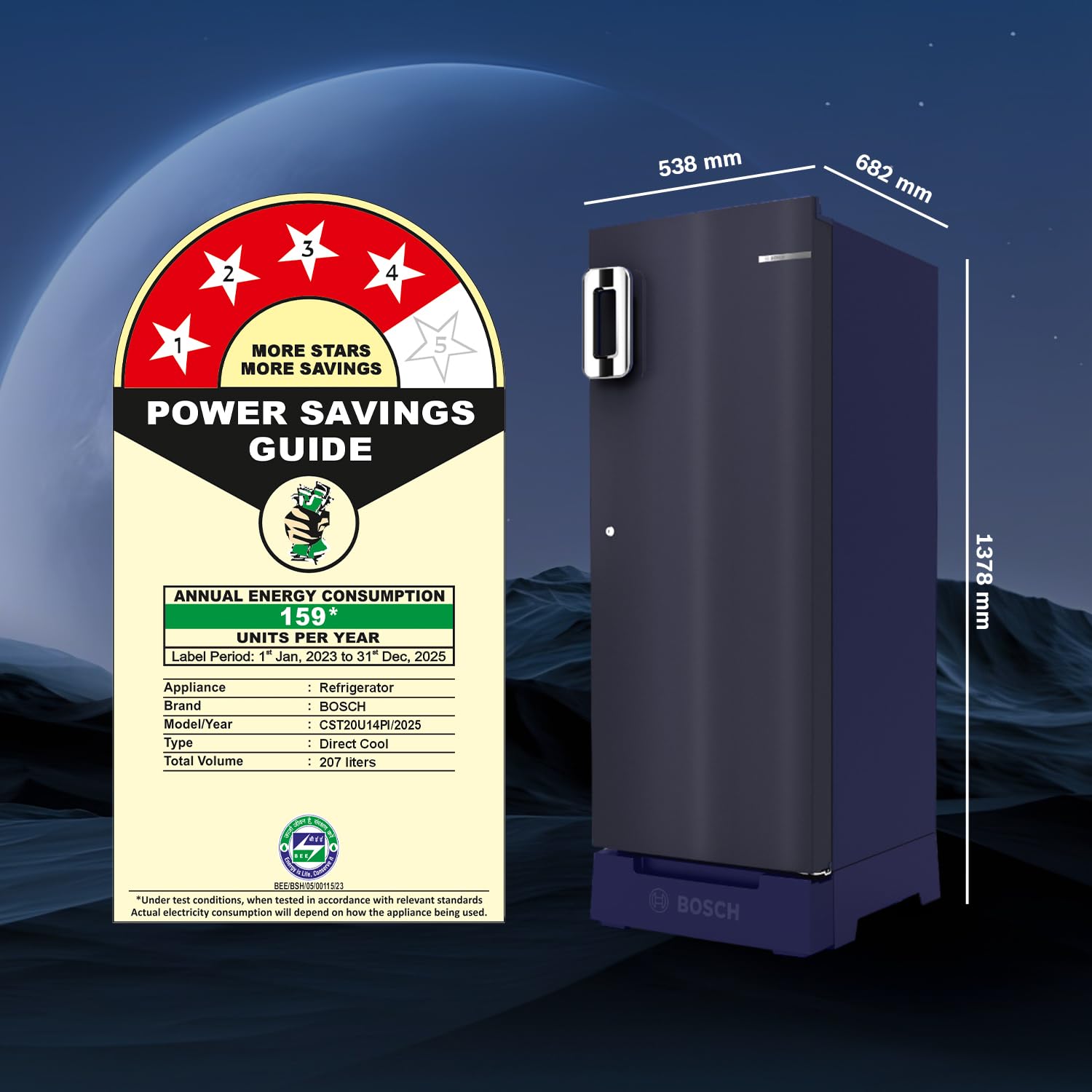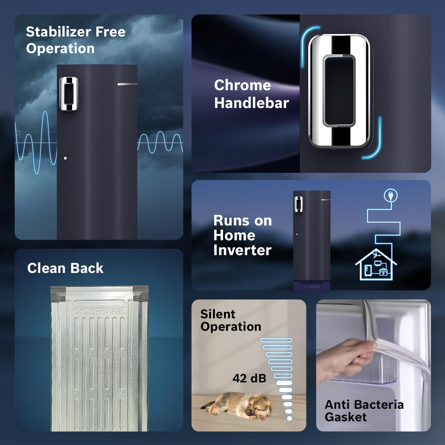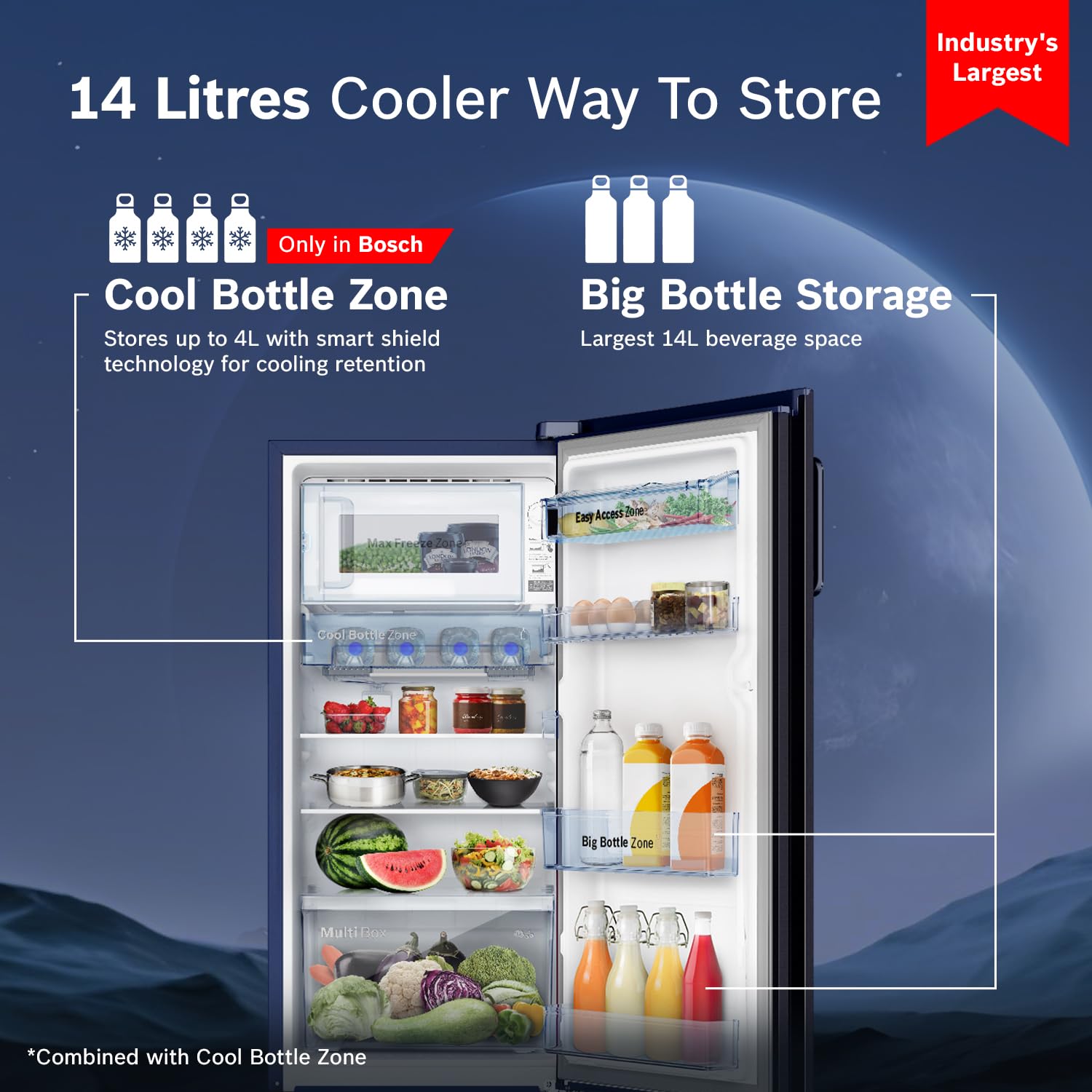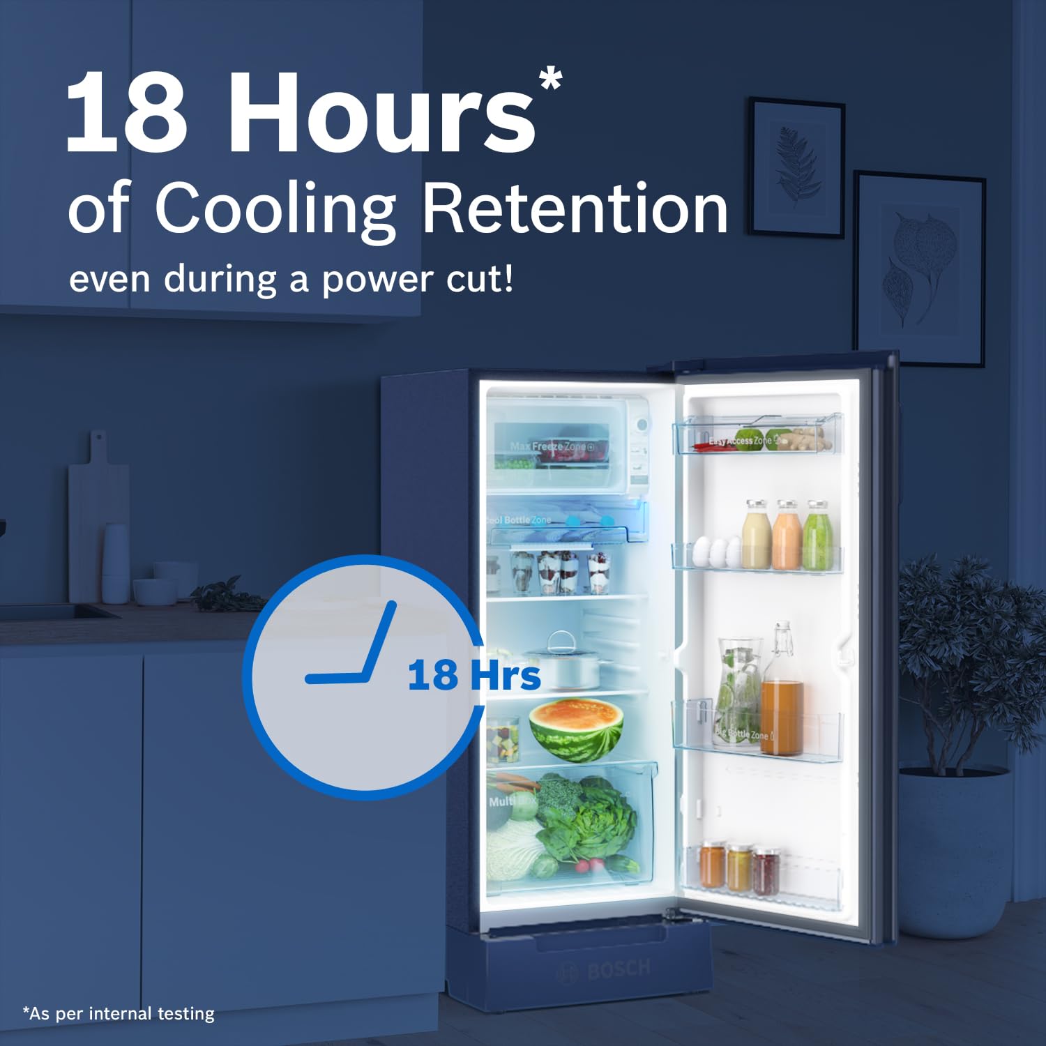 Bosch 207L 4 Star Inverter Direct-Cool Single Door Refrigerator (CST20U14PI, Dark Lake, Base Stand with Drawer & Saperator)