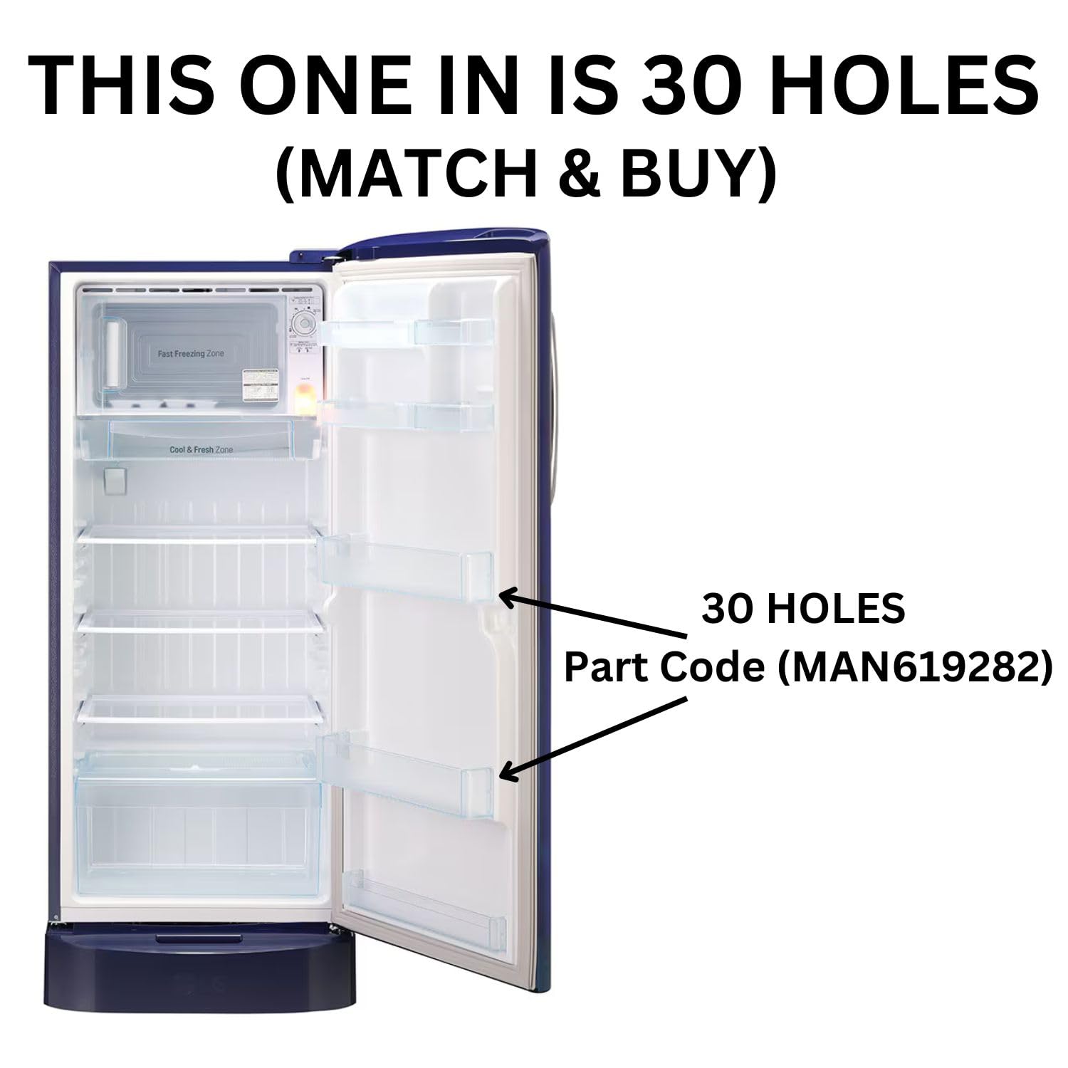 Restore your LG refrigerator’s functionality with this durable replacement bottle shelf/rack, compatible with 165–190 litre models. Designed for a perfect fit, it securely holds bottles and keeps your fridge organized. Before purchasing, verify compatibility by comparing the sides or bottom of your old bottle rack with this replacement. Easy to install, it’s the ideal solution for a broken or damaged fridge shelf, ensuring convenient and efficient storage.