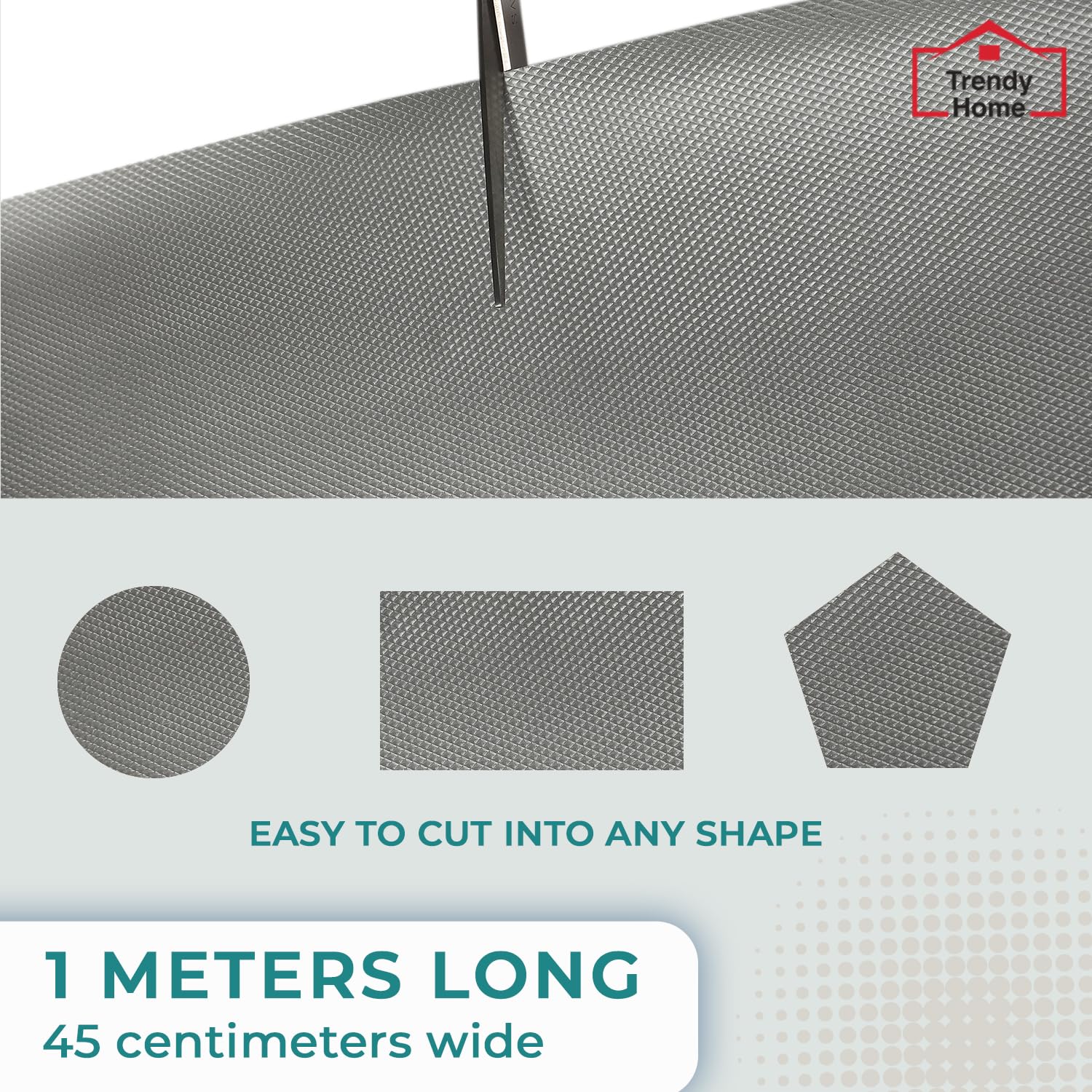 by Trendy Home Anti-Slip Mat for Kitchen (45 cm x 1 m), Food Grade & Washable, Mat for Fridge, Shelves, Cupboards, EVA Shelf Liner Sheet for Drawers & Wardrobe (Diamond Texture, Grey)