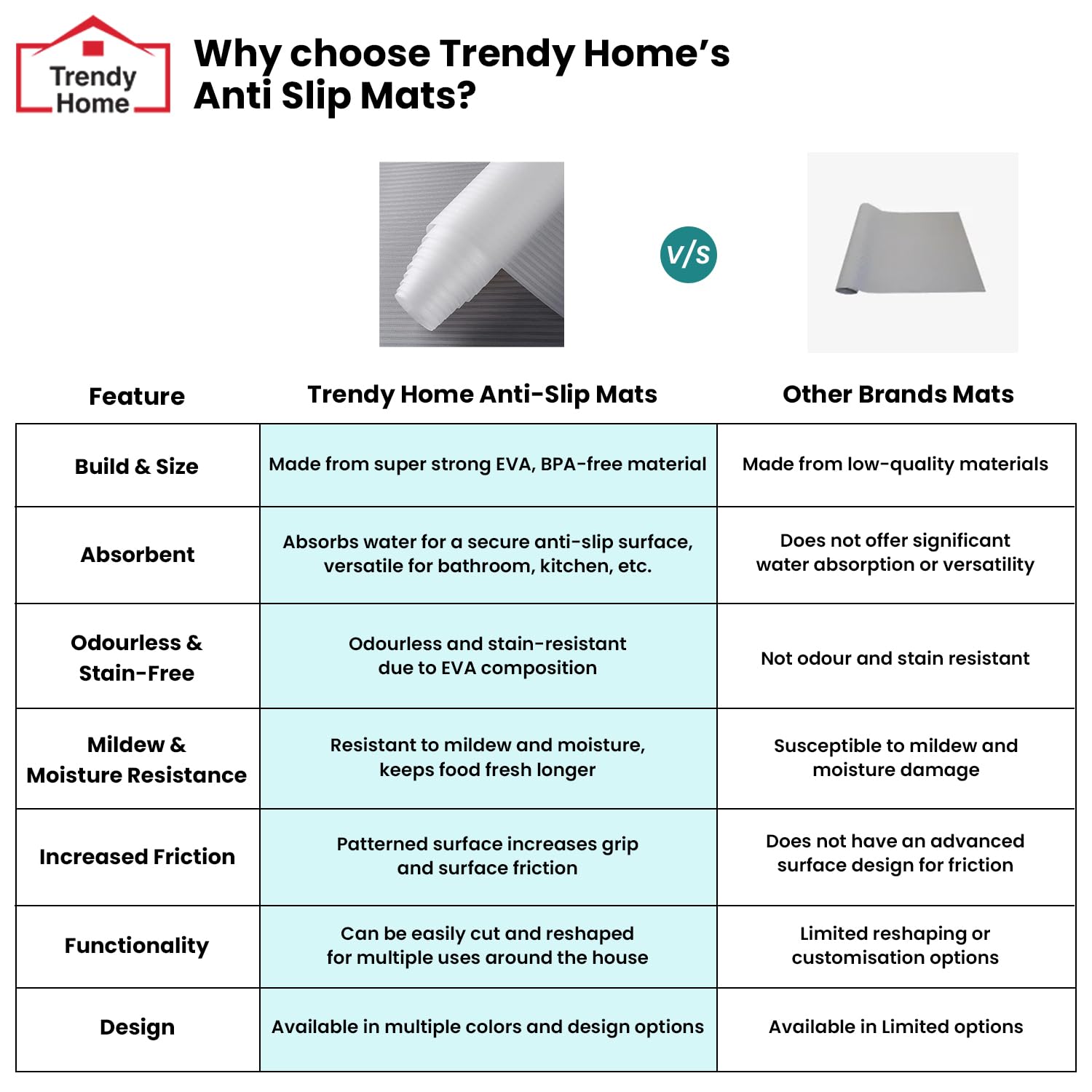 Built Tough with Super Strong EVA: Made from premium food-grade EVA that doesn’t curl, crack, or give up. The Trendy Home Anti-Slip Mat is BPA-free, durable, and designed to handle everyday kitchen chaos with ease.