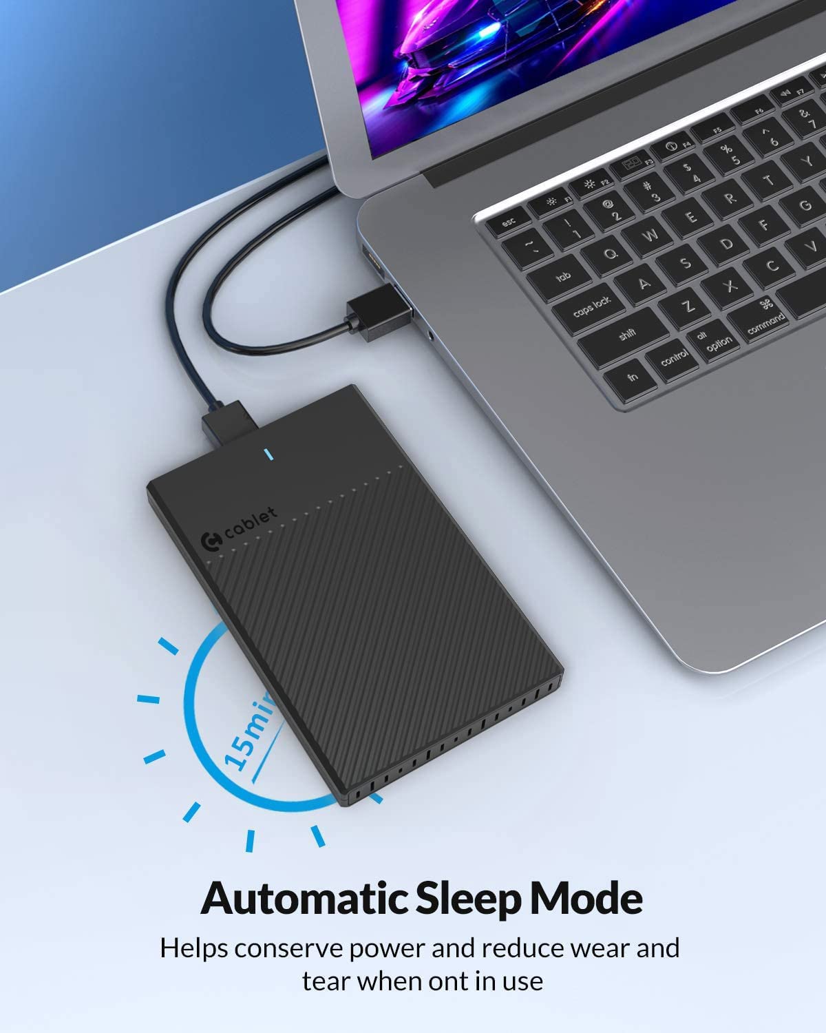 Cablet 2.5 Inch SATA USB 3.0 HDD/SSD Portable External Enclosure for 7mm and 9.5mm, Tool-Free Design, Supports UASP Max 6TB