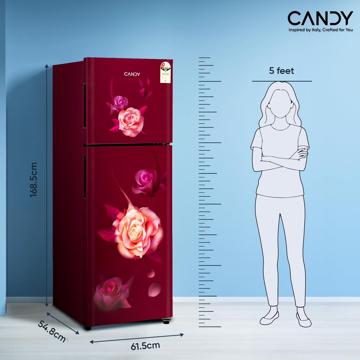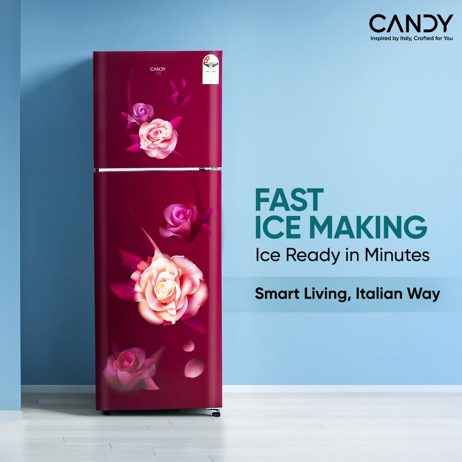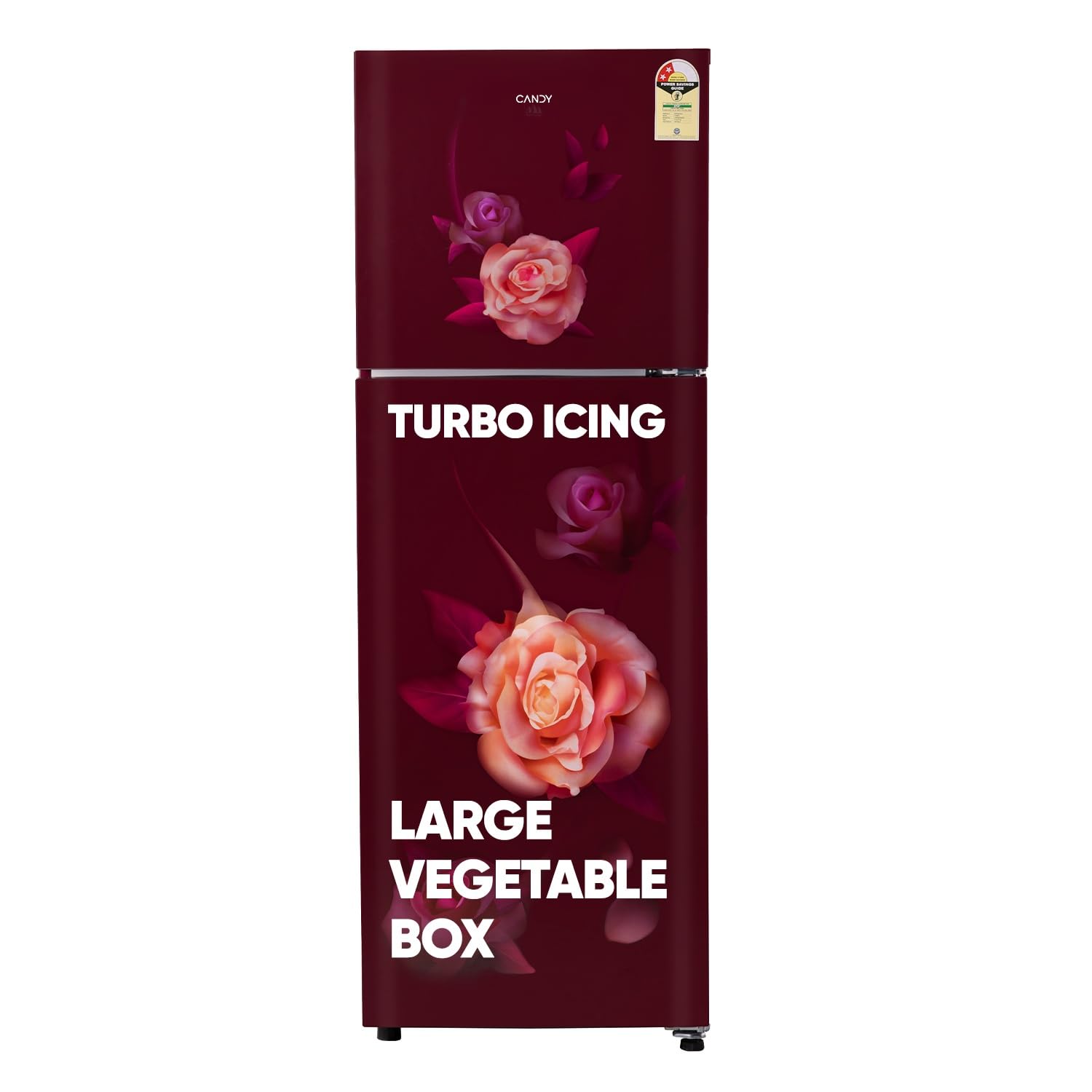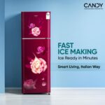 Candy 240 L 2 Star Frost Free Double Door Refrigerator, Flower Pattern with Auto frost, large Fruit & Vegetable Space (Red Blaze, CDD2652ERB)