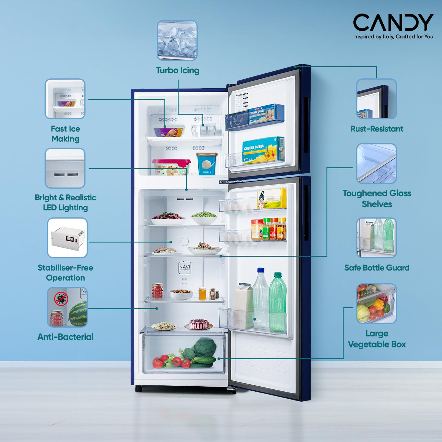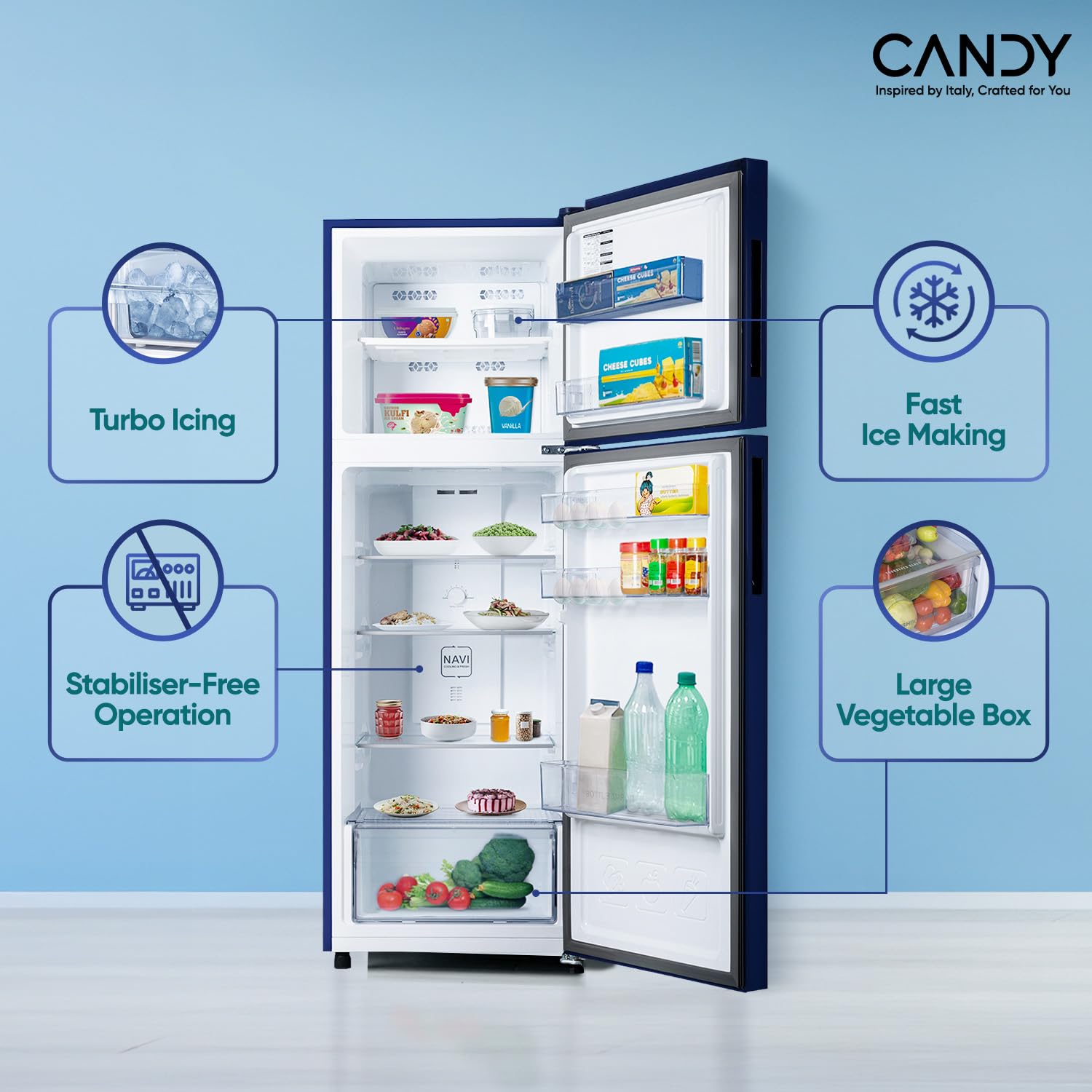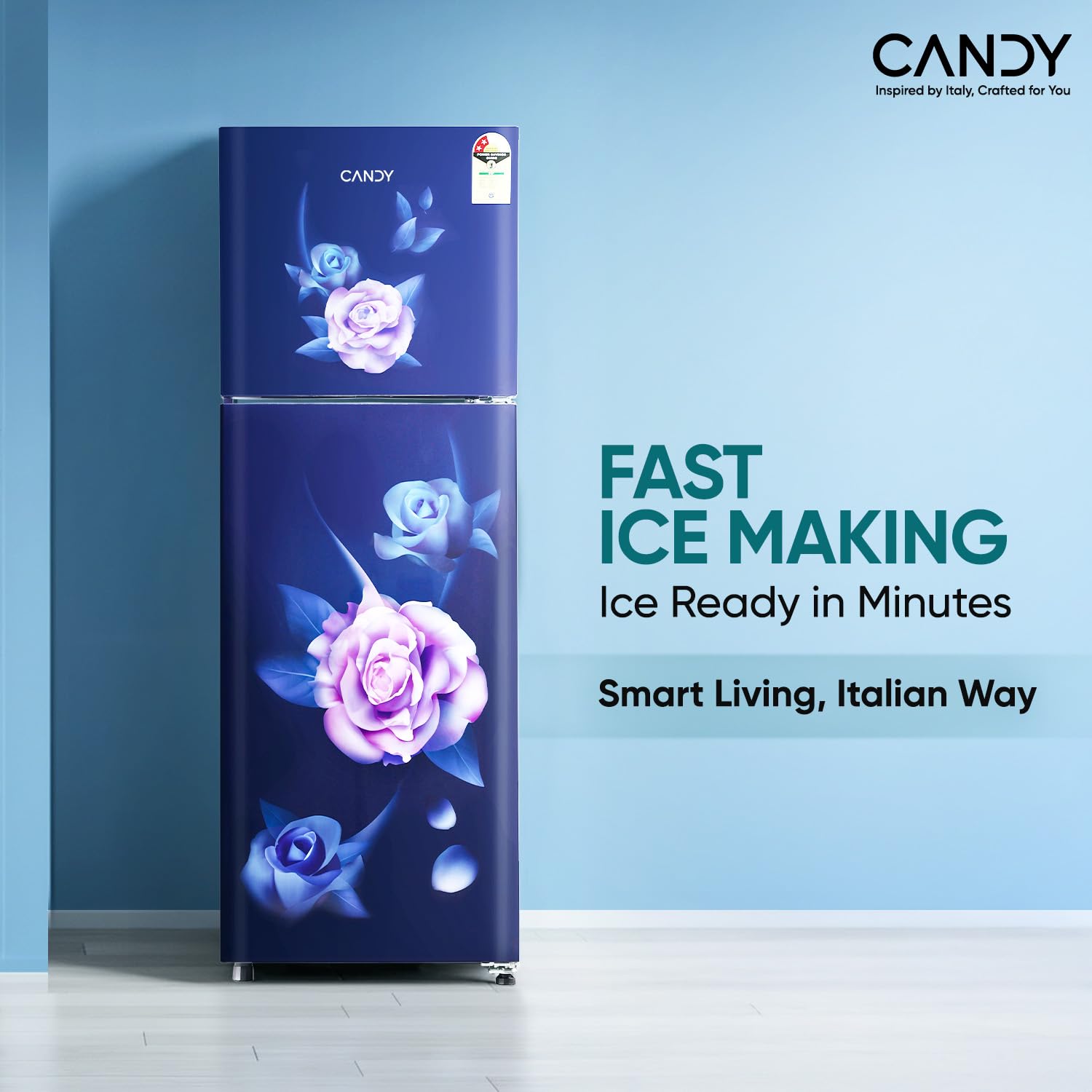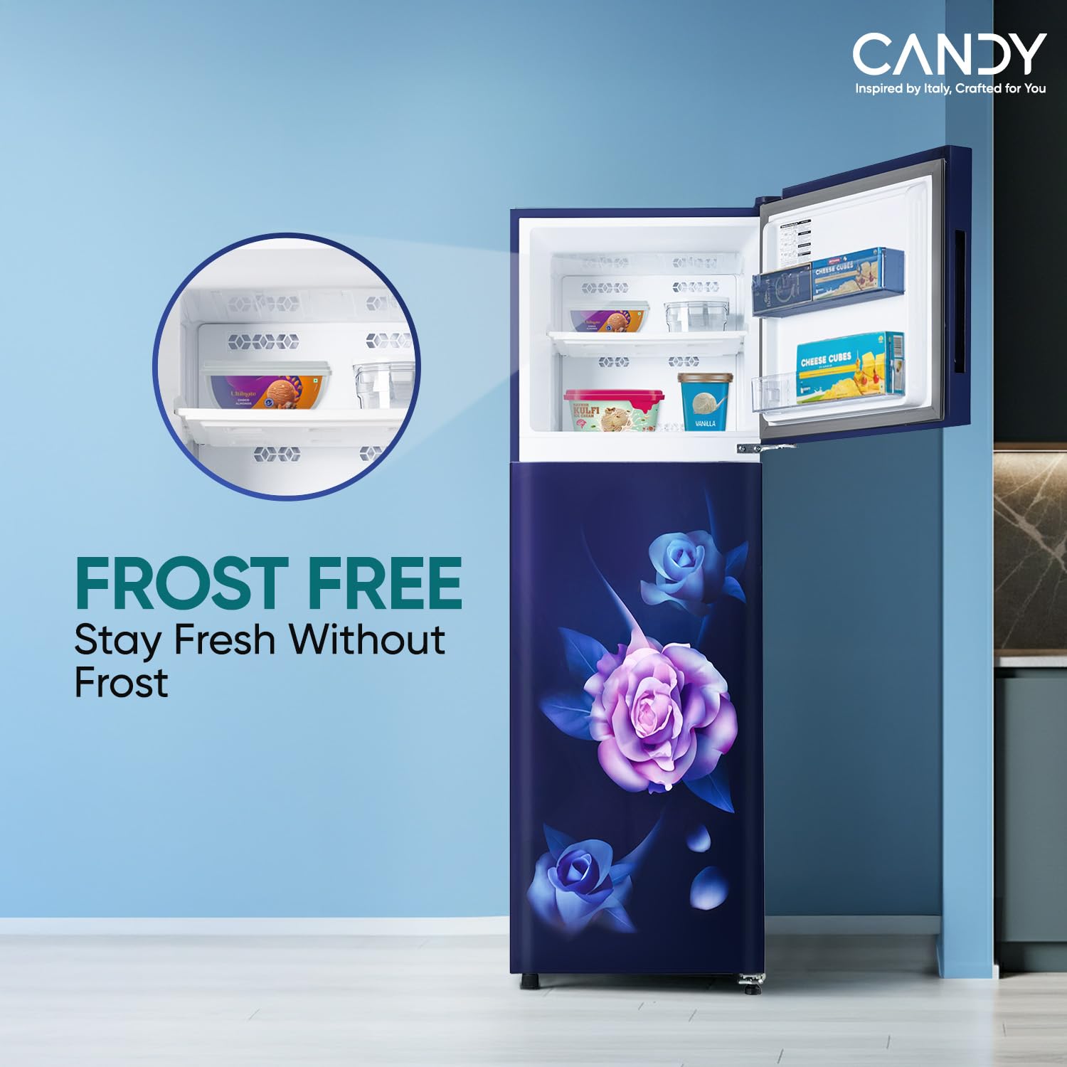 Candy 240 L 2 Star Frost Free Double Door Refrigerator with Flower Pattern,Auto frost, large Fruit & Vegetable Space (Marine Blaze, CDD2652EMB)