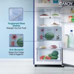 Boasting toughened glass shelves, this refrigerator can withstand the weight of heavy pots and pans, ensuring long-lasting durability. And, cleaning these shelves is a breeze as they are easy to slide out and wipe clean. Additionally, their transparent design provides clear visibility, making it effortless to find and get your food and drinks.