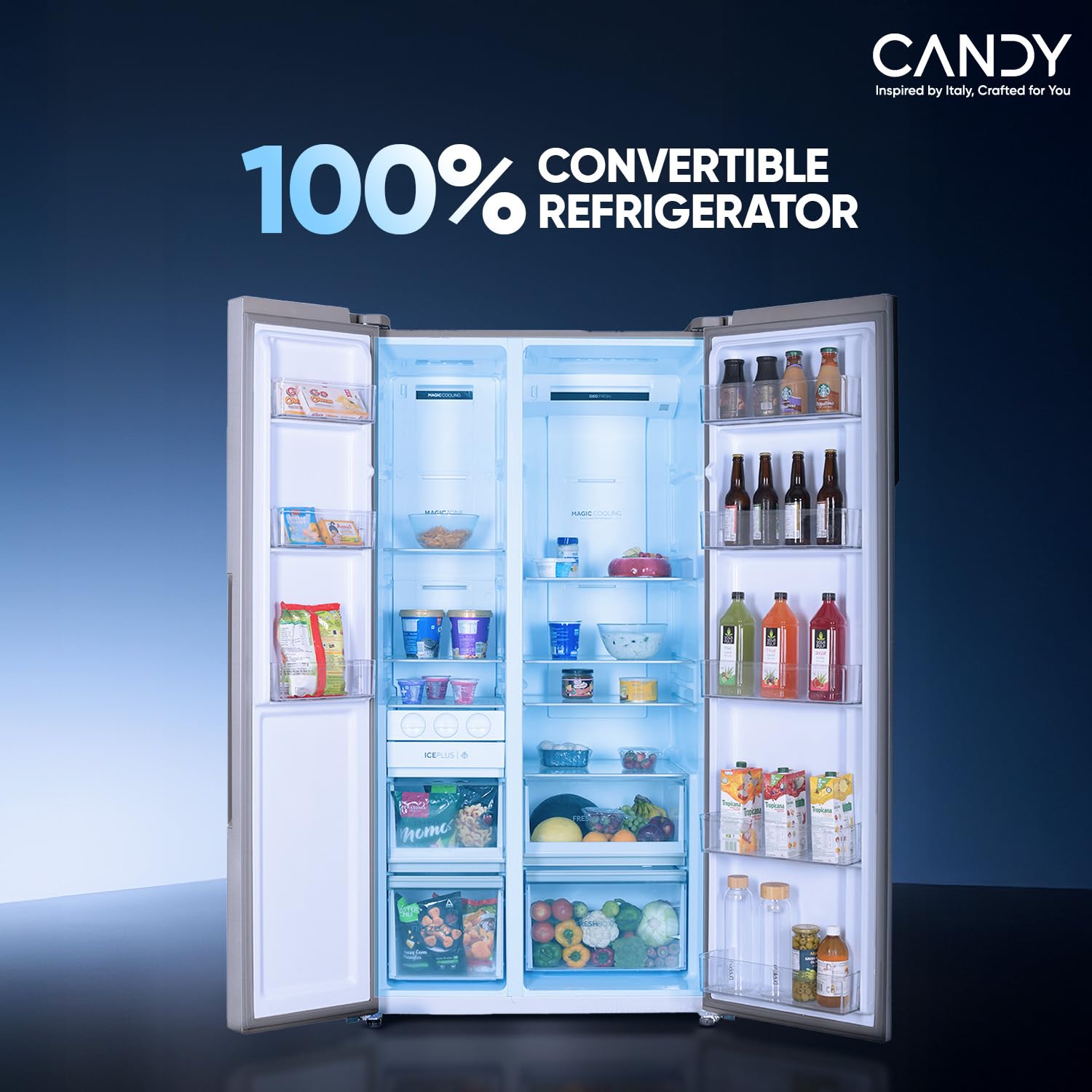 Candy 602 L Frost Free Side by Side Refrigerator with 100% Convertible Technology, Digital Control Panel and Magic Convertible Cooling 2-door (Shiny Steel, CSS6600TS)