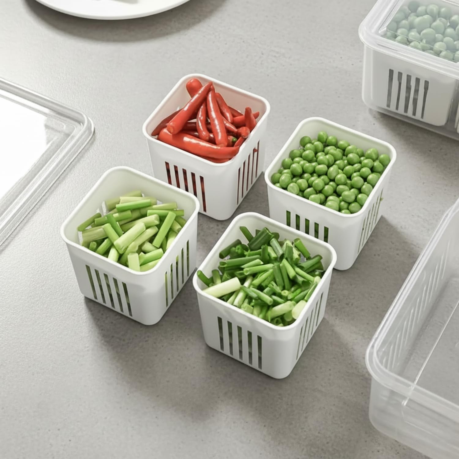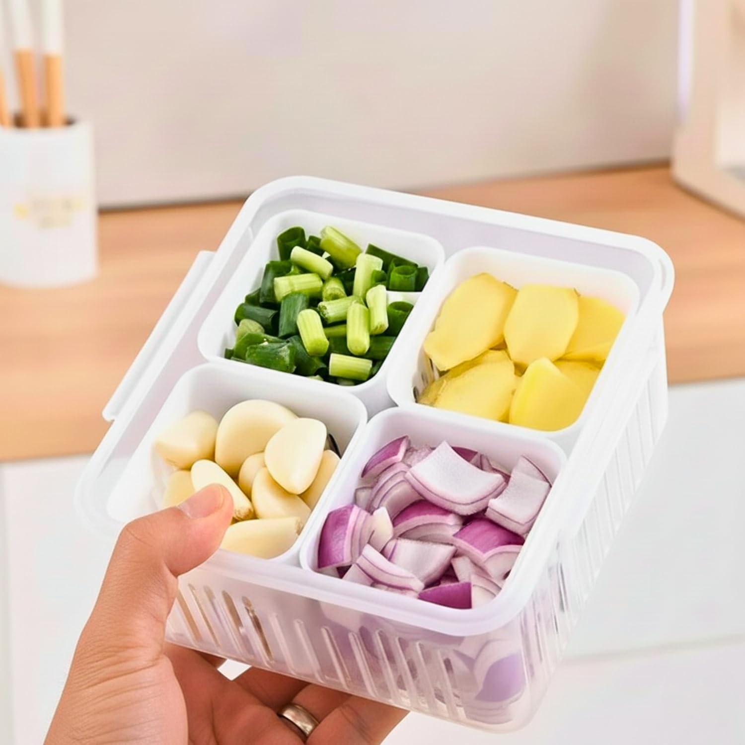FRESHNESS LOCKED IN: Keep your food fresher for longer with these 4-grid air-tight fridge storage boxes. The tight-seal lids prevent moisture and air from entering, maintaining the natural taste and texture of your food.
