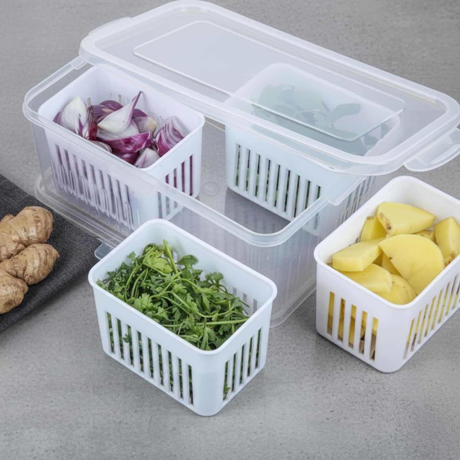 CELA Fridge Storage Boxes, Food Organizer Storage Box Set, Freezer Storage Containers, Fridge Container for Kitchen Storage Set, Vegetable Storage Box for Fridge (4- Compartment)