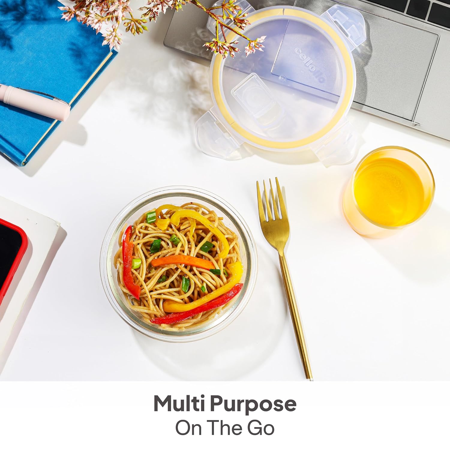 CELLO Fit & Fresh Glass Fridge Lunch Box Container Set of 2, 400 ml Each, Clear | Food Grade, Microwave Safe, Leadfree, BPA Free | Air Tight, Leakproof, Stackable Fridge Storage Containers For Office