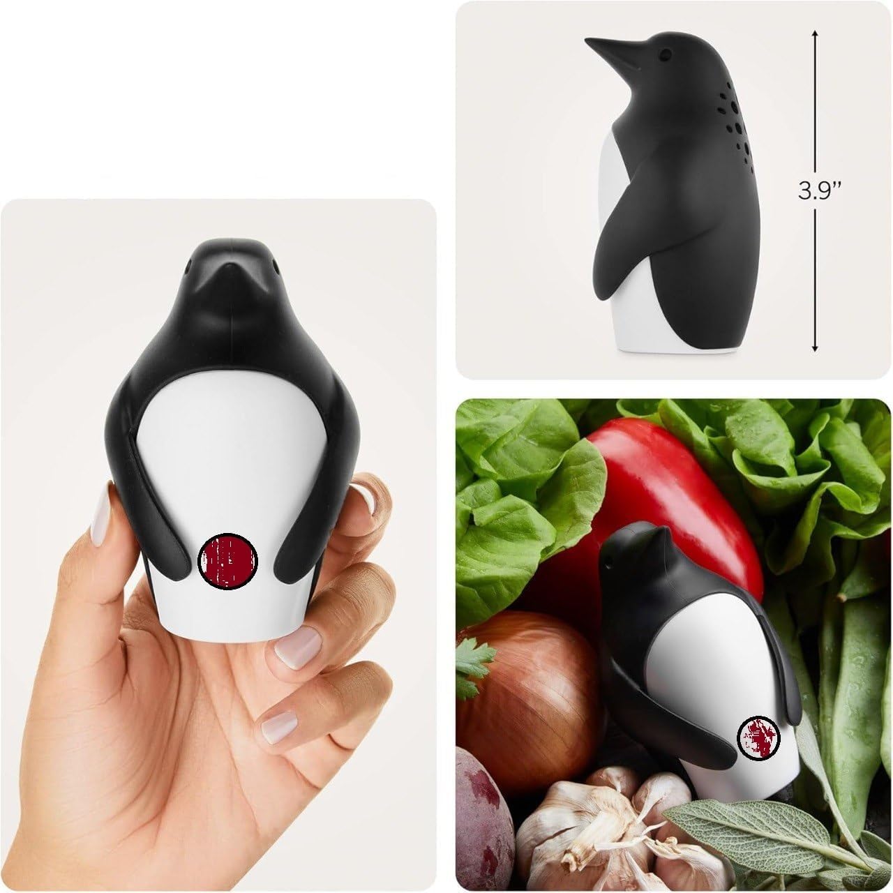 Chill Bill Penguin-Shaped Silicone Refrigerator Deodorizer, Black and White, Food-Safe Baking Soda Freshener, 3.9-inch, Dishwasher Safe, Reusable Fridge Odor Remover