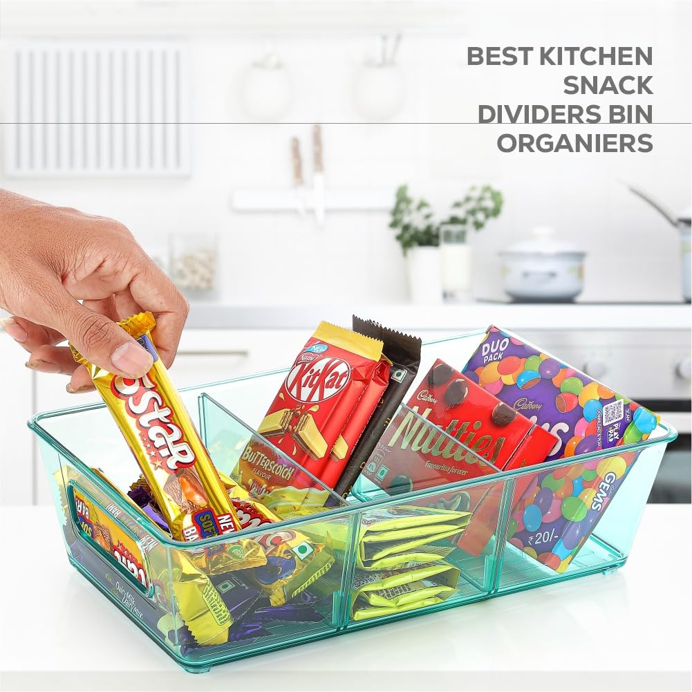 Clazkit 3 Partition Transparent Plastic Fridge Storage organizer box for food storage in Fridge, Freezer, Kitchen Cabinet, Pantry Organization, BPA Free – Pack of 2