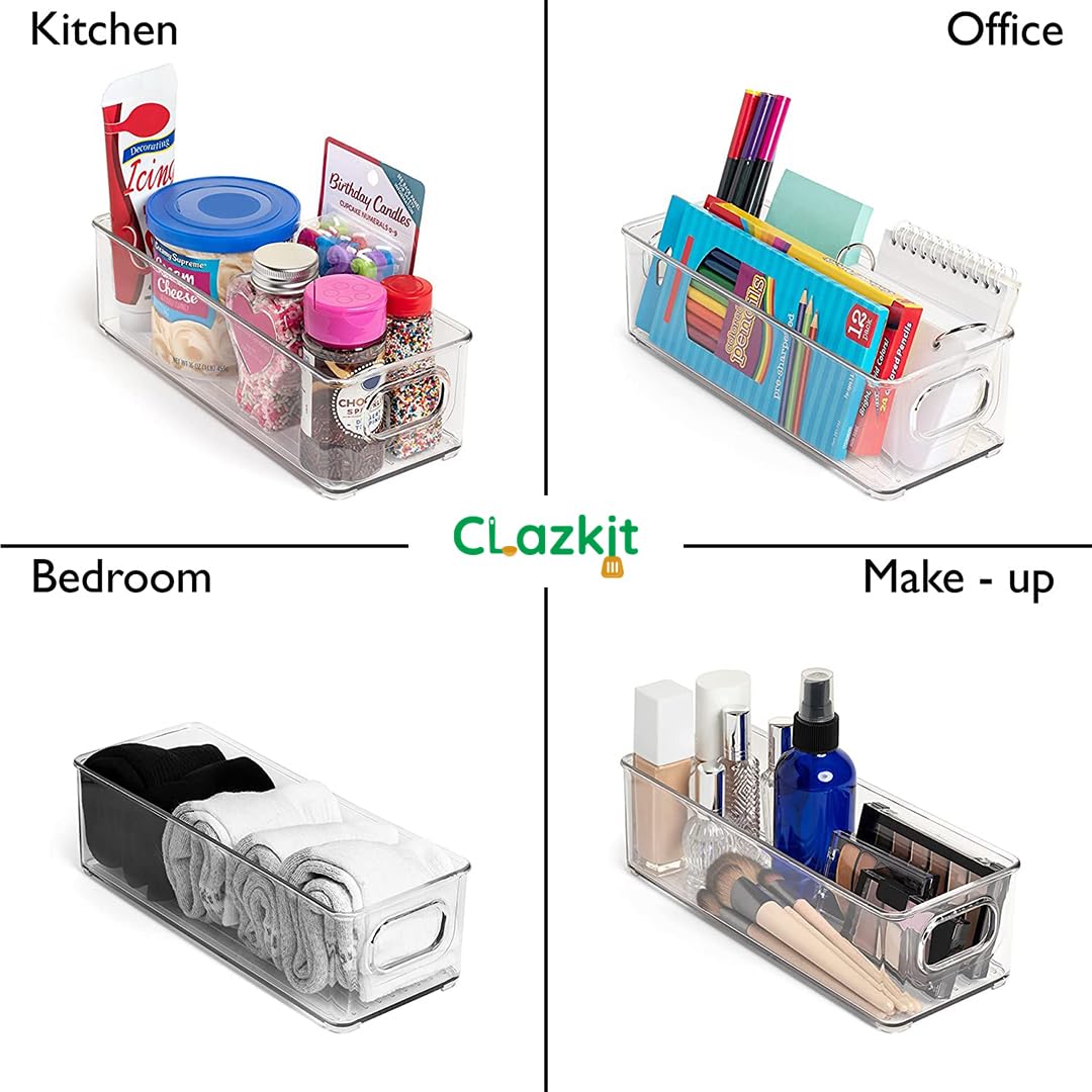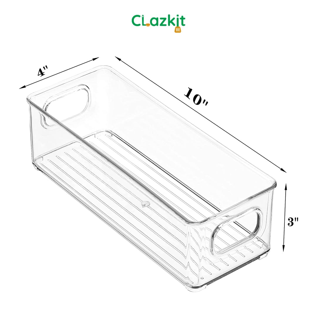 Clazkit Acrylic Fridge Organiser | Fridge Storage Boxes | Refrigerator Storage Containers | Pack of 4| For Vegetable, Fruits Etc | Size-10″x 4″ x 3.0″ | Transparent
