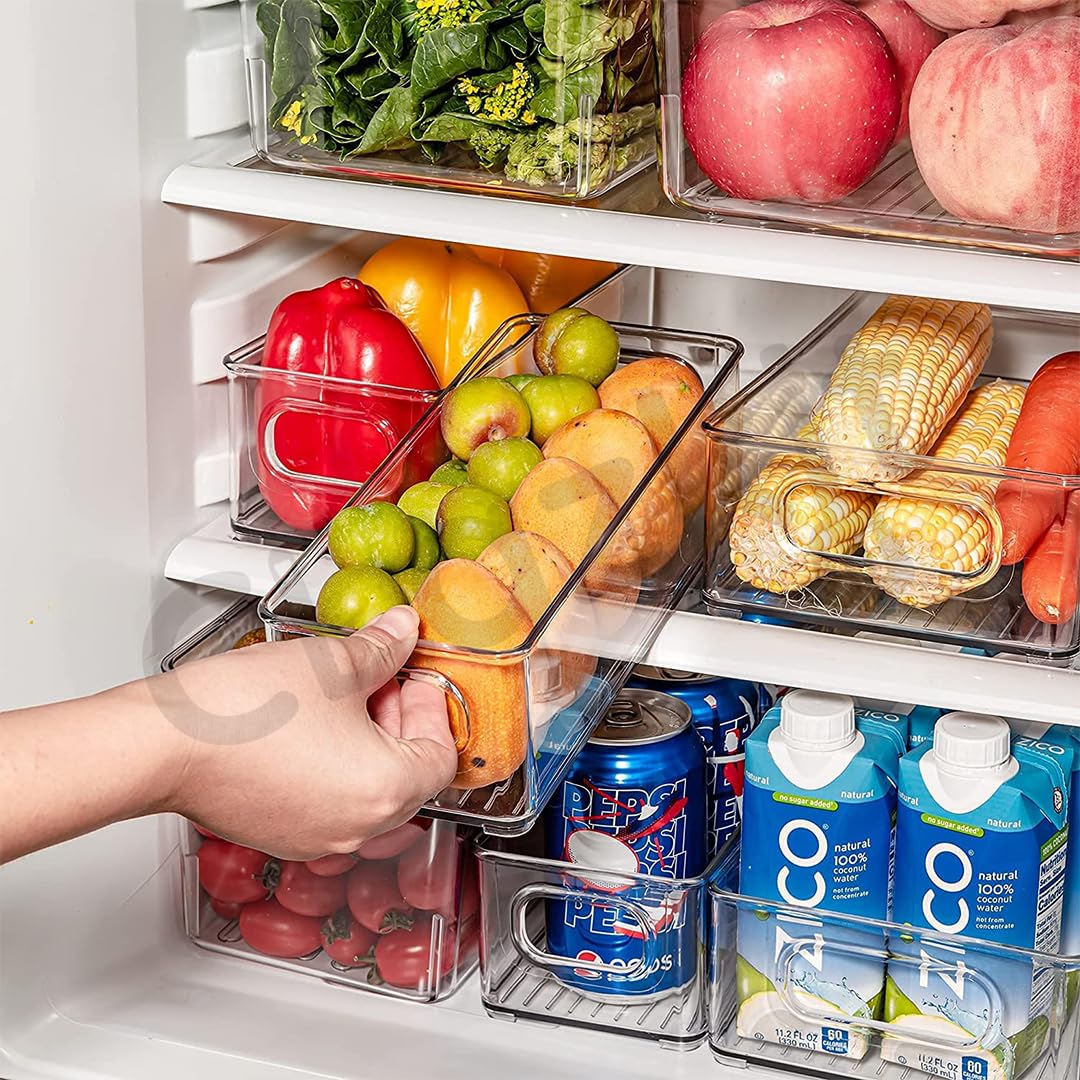 THICK MATERIAL: These refrigerator stackable organizer bins use thick materials to increase toughness. As transparent as glass, easy to see the items inside. They are fall-resistant, sturdy, and not deformed. Can be used for a longer time.