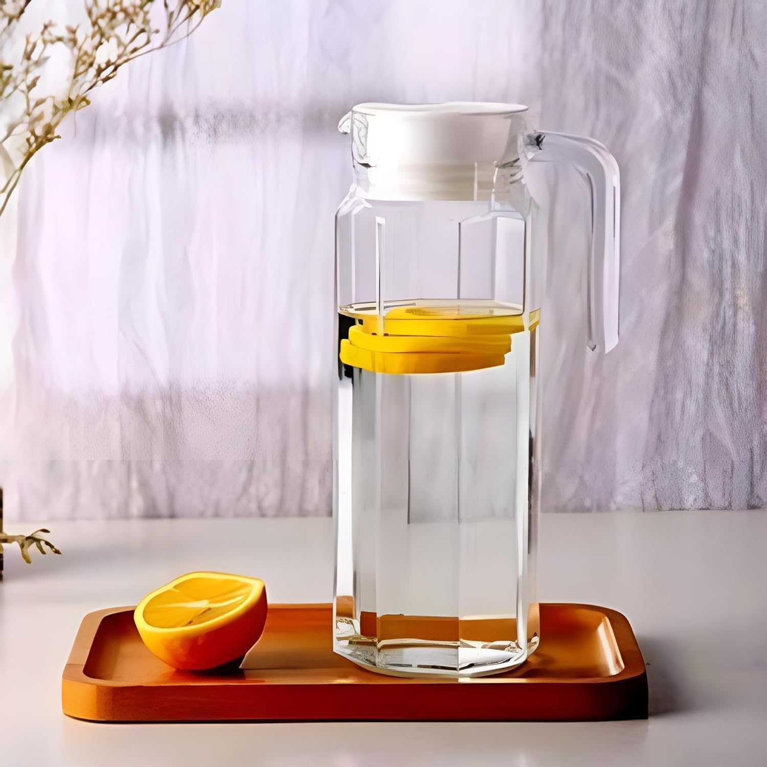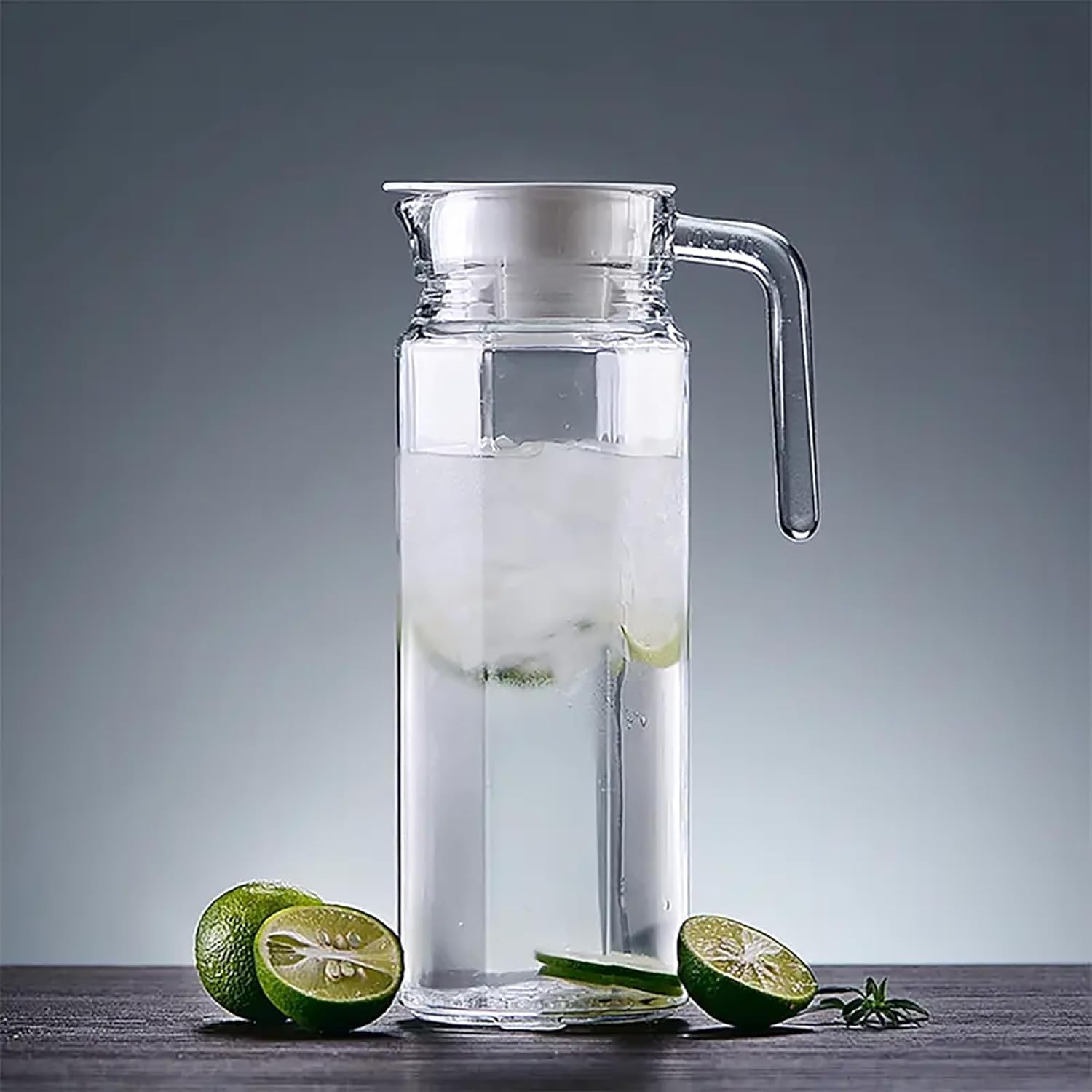 ♦Elevate your dining experience with this sleek, transparent glass pitcher designed for everyday hydration. This 1.1 litre jug features a unique octagonal base that transitions into a clean square body, adding a touch of sophistication to your table setting. The clear glass construction allows you to showcase colorful fruit infusions, fresh juices, or iced teas beautifully. Designed for practicality, the integrated handle ensures a steady grip while pouring, and the tight fitting white lid keeps your beverages fresh and shielded from fridge odors. The slim profile is specifically engineered to fit into most standard refrigerator side doors, saving valuable shelf space. Whether you are hosting a formal dinner or simply keeping chilled water ready for the family, this glass carafe is a reliable choice. The wide mouth opening makes it simple to add ice cubes, large fruit slices, or mint sprigs for customized drinks. Maintenance is straightforward, as the smooth glass surface can be rinsed quickly or placed in the dishwasher for thorough cleaning. This versatile vessel is ideal for serving guests at home, in the office, or during outdoor gatherings.♦