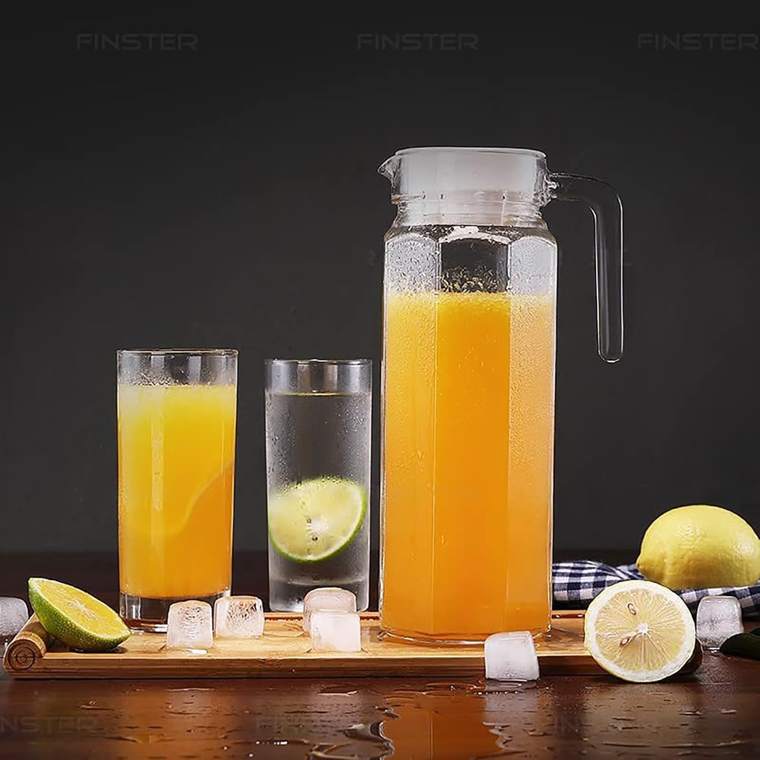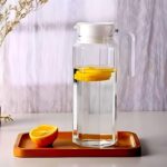 Clear Glass Water Pitcher with Handle and Lid | 1.1 Litre Beverage Jug for Fridge | Square Glass Carafe for Juice, Iced Tea, and Infused Water. (Pack of 1)