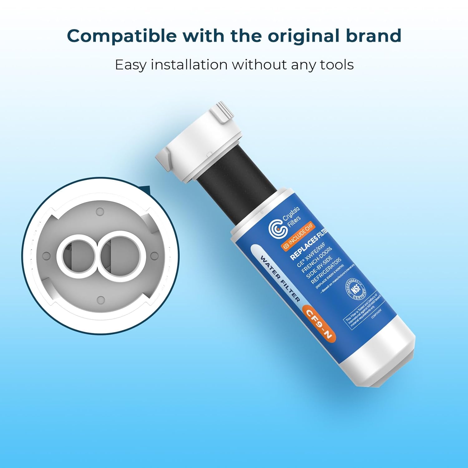 Offers a Precise, Leak-Proof Fit: The CF9-N water filter replacement for XWFE is compatible with GE side-by-side refrigerators and provides a tool-free installation. It’s an excellent replacement for the GE XWFE filter. ( Crystala Filters is an independent brand, and this product is not manufactured by GE.)