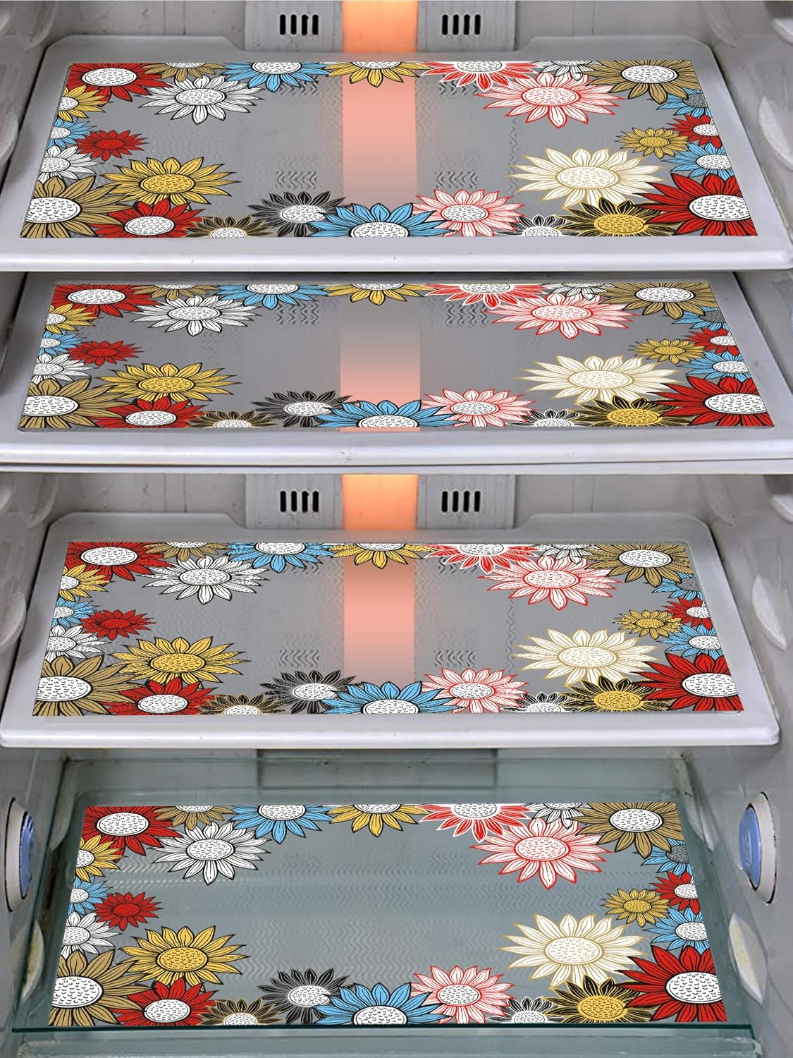 DakshyaIndustries Pack of 4 PVC Fridge Mat/Refrigerator Mat (Multicolour)