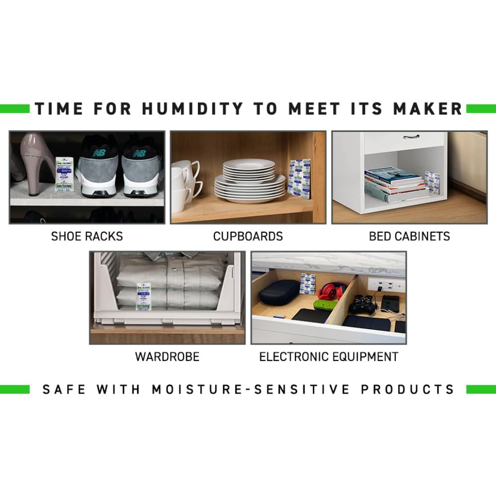Compact & slim design: A new type of moisture absorber that will work in every environment – Shoe racks, Cupboards, Bed Cabinets, Washrooms, Electronic Equipments, etc.