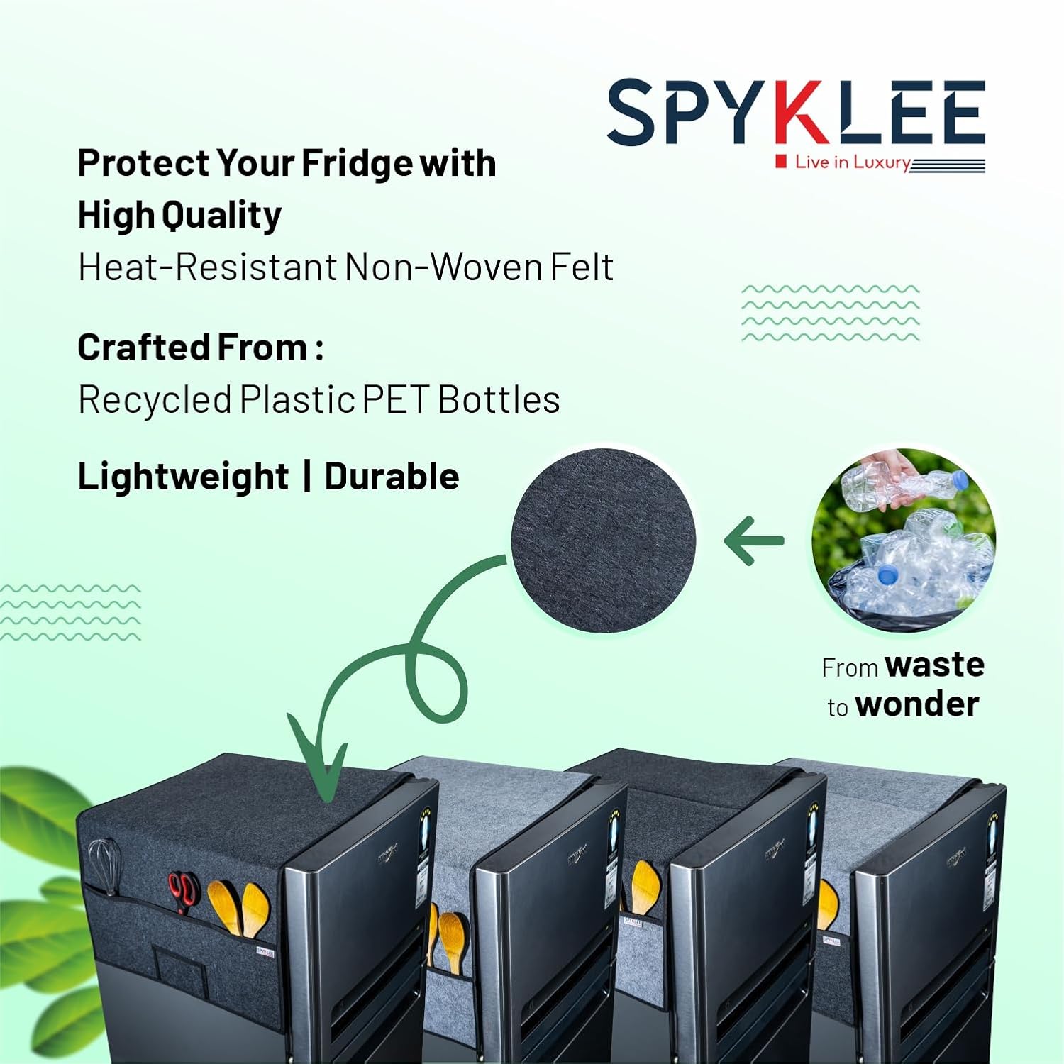 At Spyklee, we believe that great design and sustainability go hand in hand. Our journey started with a simple yet powerful goal: transforming waste into purposeful, stylish products. Every product we create is crafted from recycled plastic PET bottles, reducing waste and pollution while providing durable and functional solutions for modern lifestyles.
