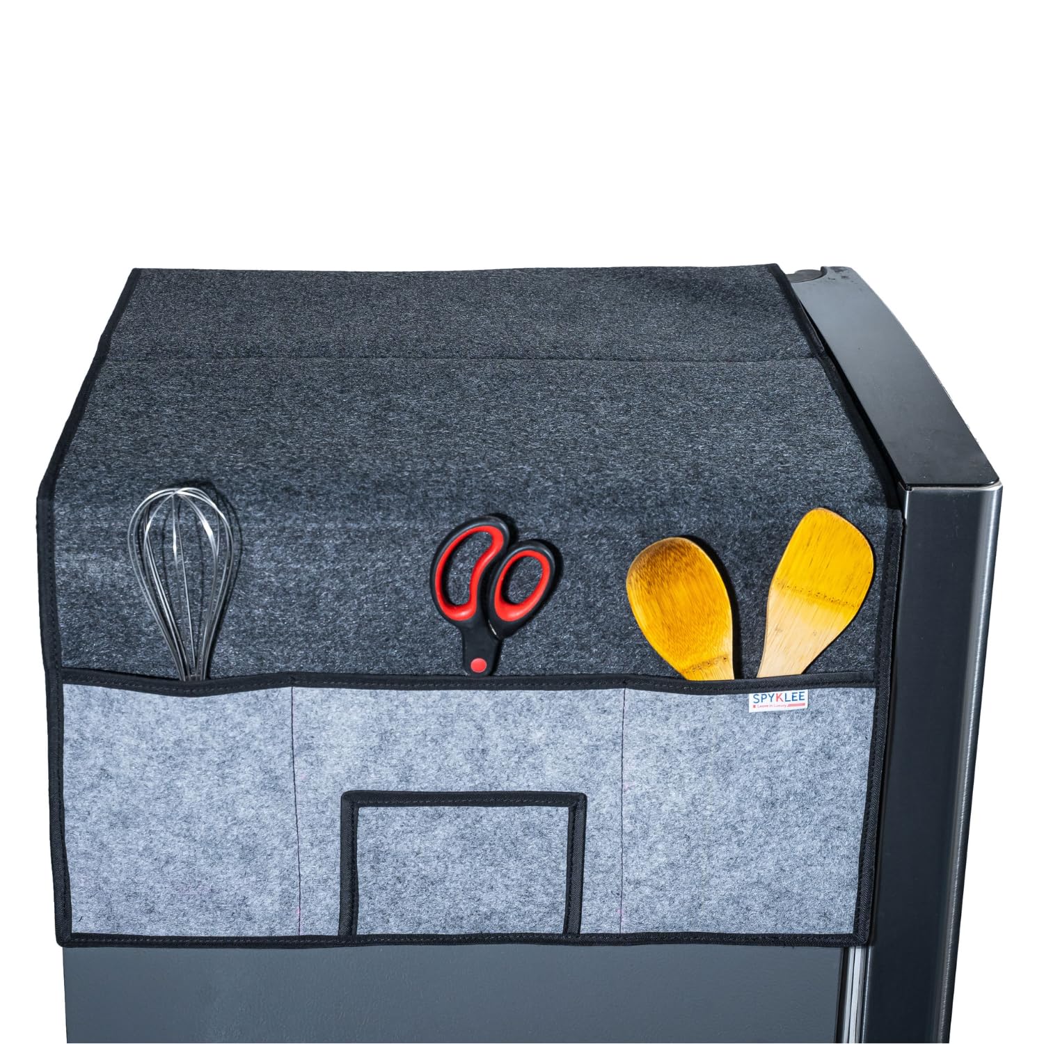 It looks smart on my refrigerator . It’s color combination of black & grey comprehend my black color refrigerator, size is accurate , pockets are very useful . It’s quality of stitching is perfect but it is difficult to clean dust from it because of its rough texture ( recommend to clean every week with dry cloth ) I wash it once in a month.