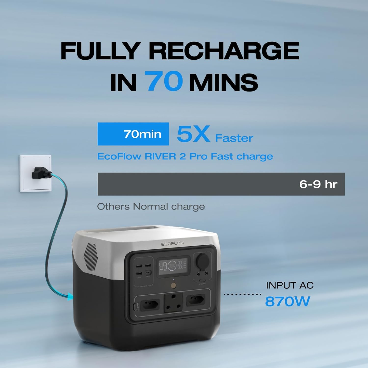 [Fastest Charging in the Industry] – Fully recharge using an AC outlet in only 70 minutes with EcoFlow’s X-Stream fast charging technology.