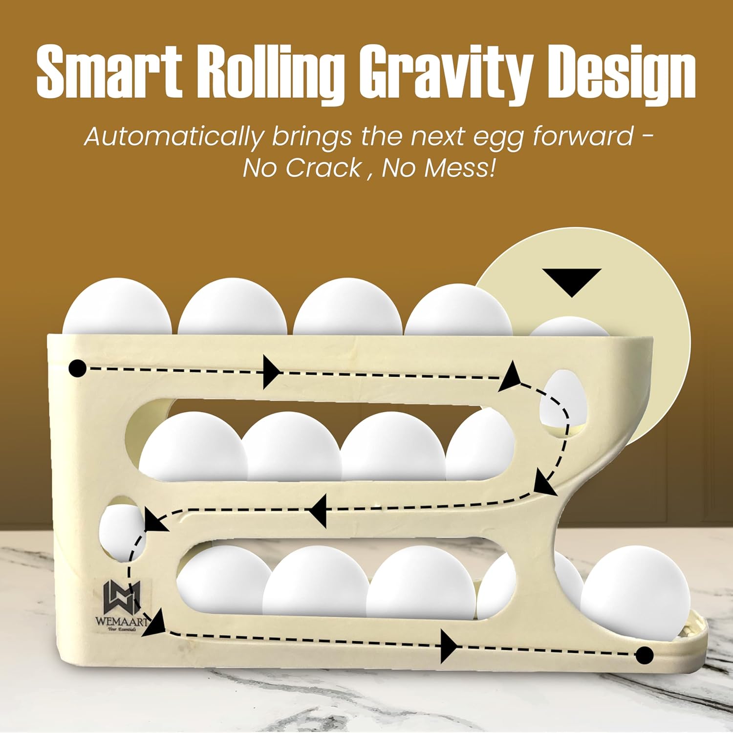Auto-Rolling Design for Easy Access Smart gravity-fed design makes eggs roll forward automatically as you pick one — ensuring convenience and zero waste.