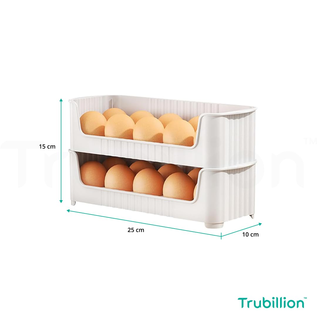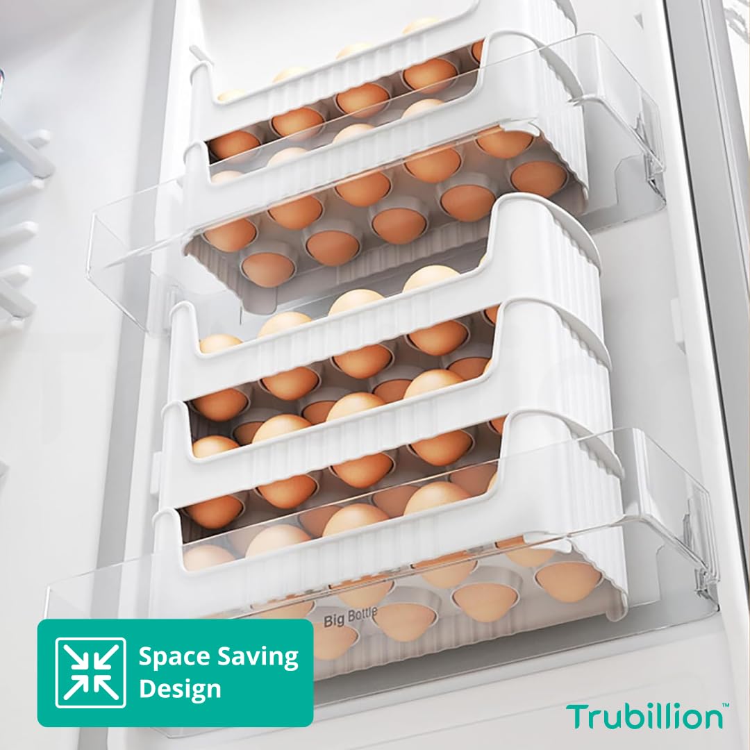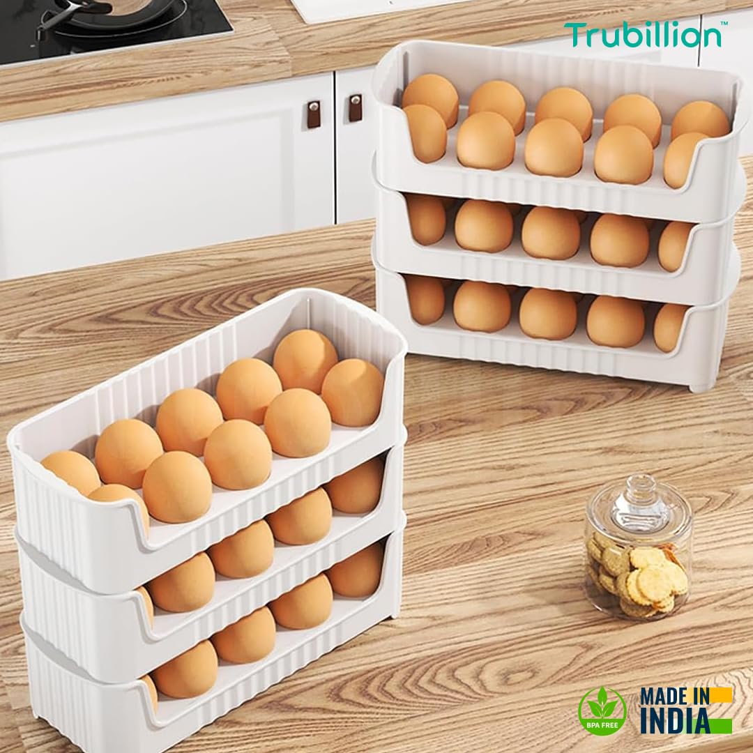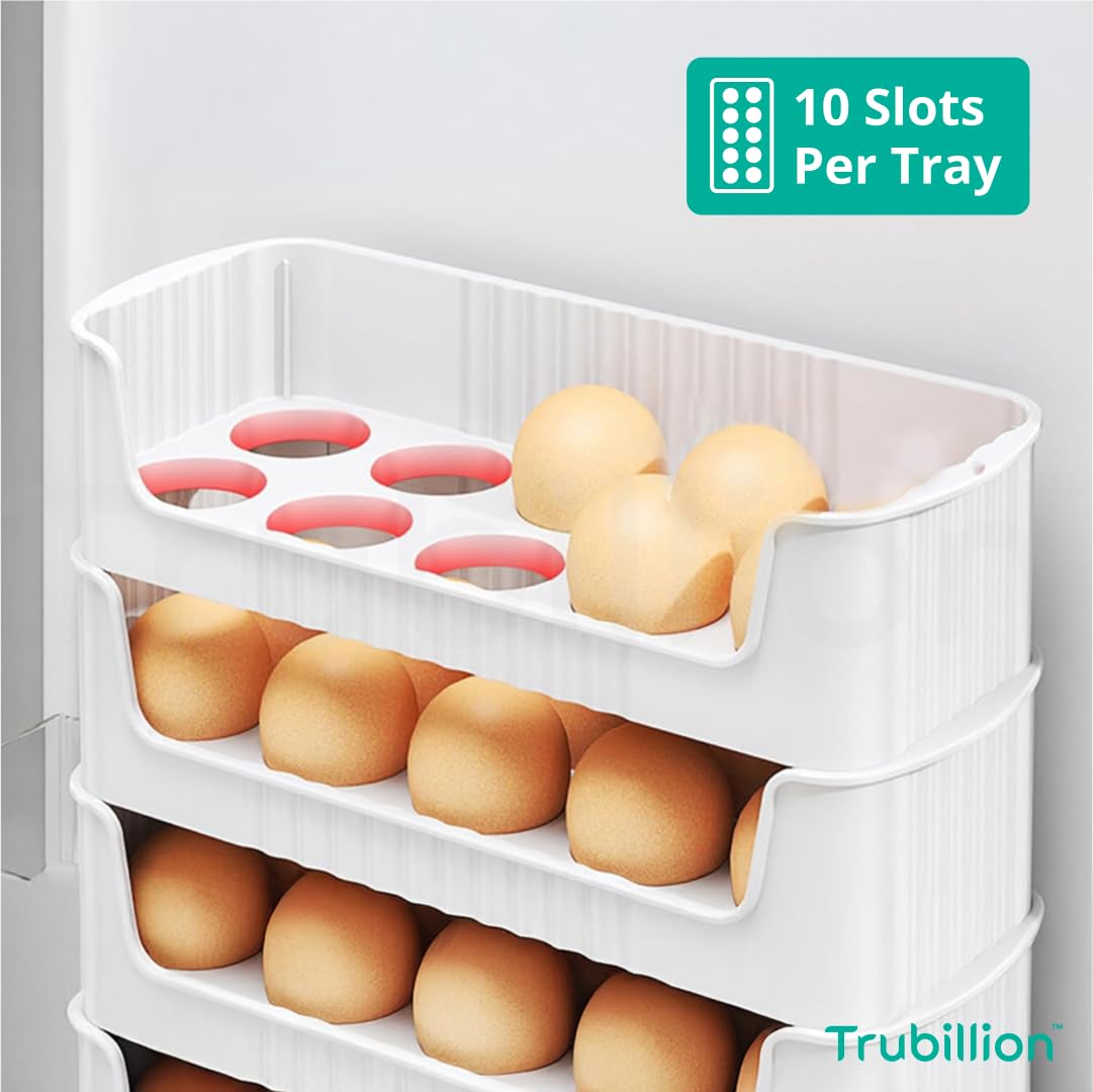 TRUBILLION EggNest Stackable Egg Tray Set of 3, 30 Egg Storage, 10 Slots Per Tray, Space-Saving Organizer for Fridge Side Door, Tabletop & Cabinet