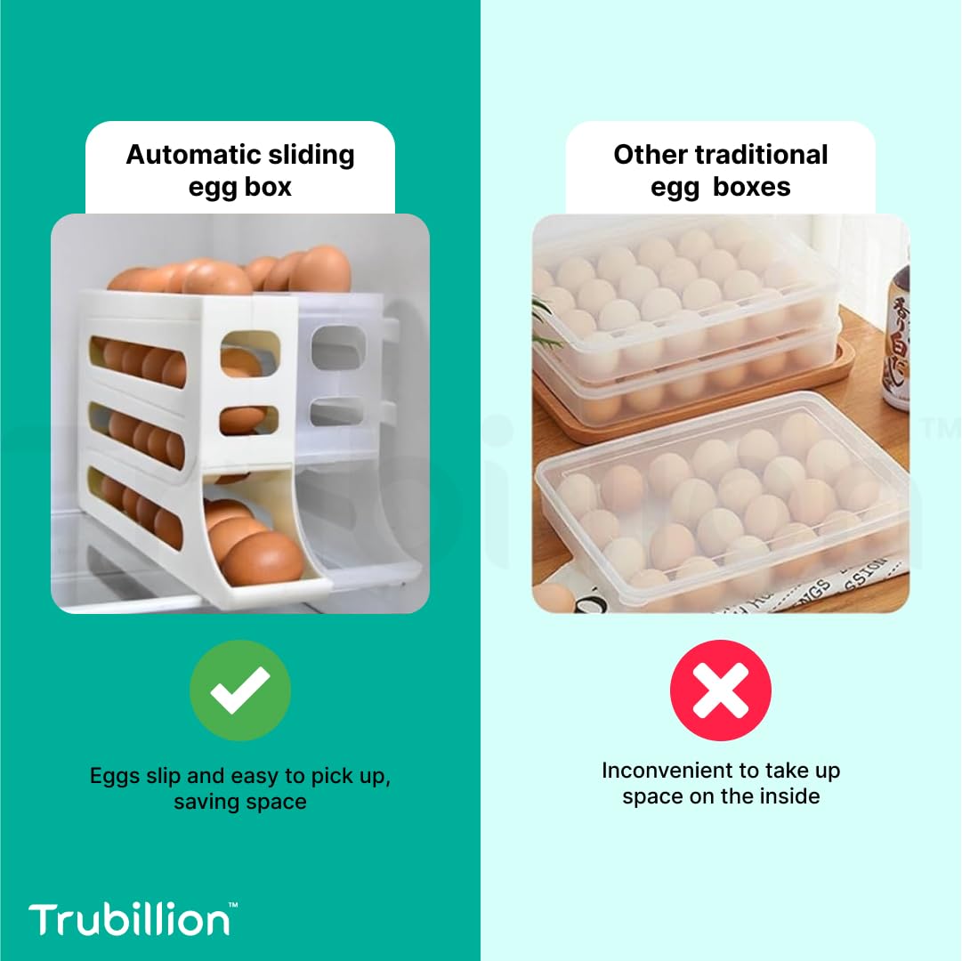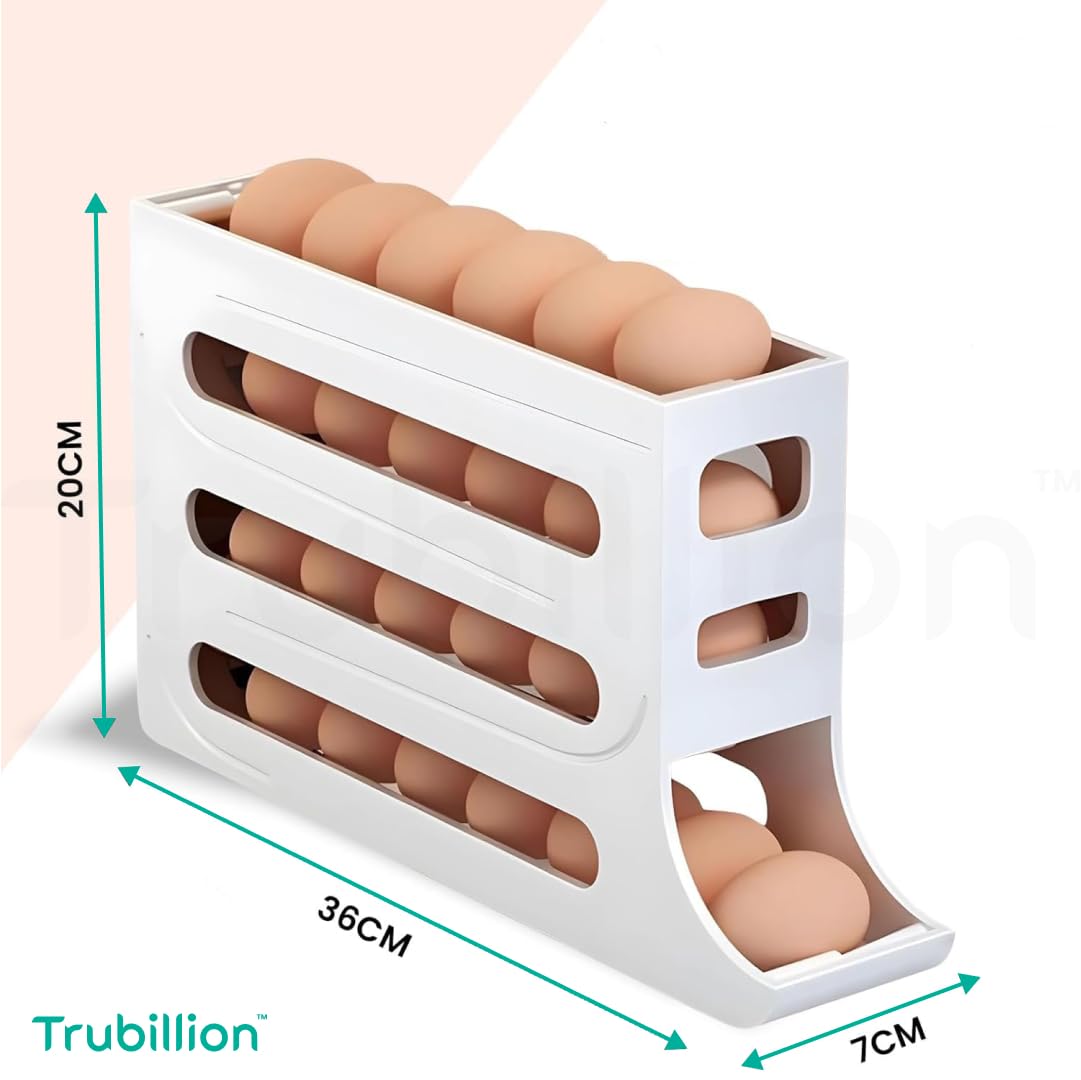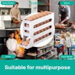 EggRoller by TRUBILLION, 4 Tier Auto Rolling Egg Dispenser Tray for Fridge Side Door and Kitchen, Vertical Storage Organizer, BPA Free, Freezer Safe