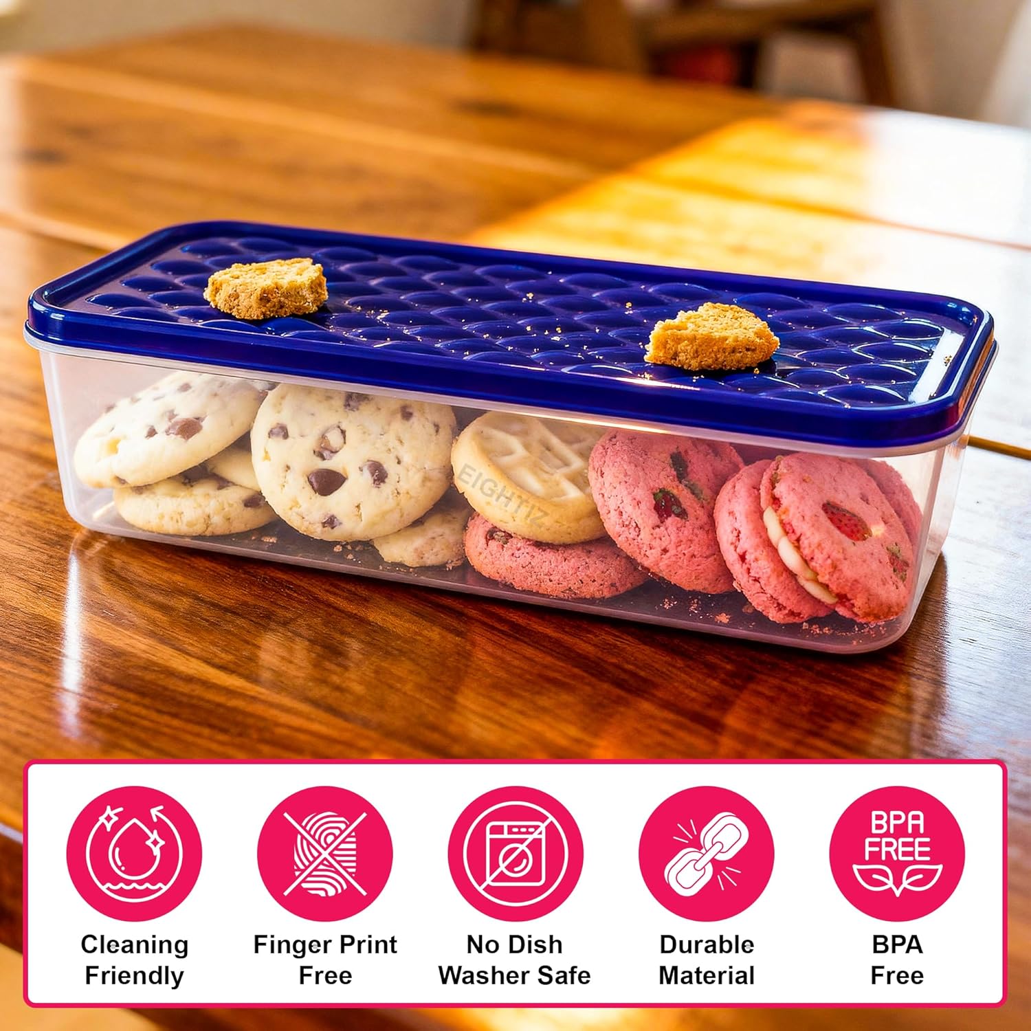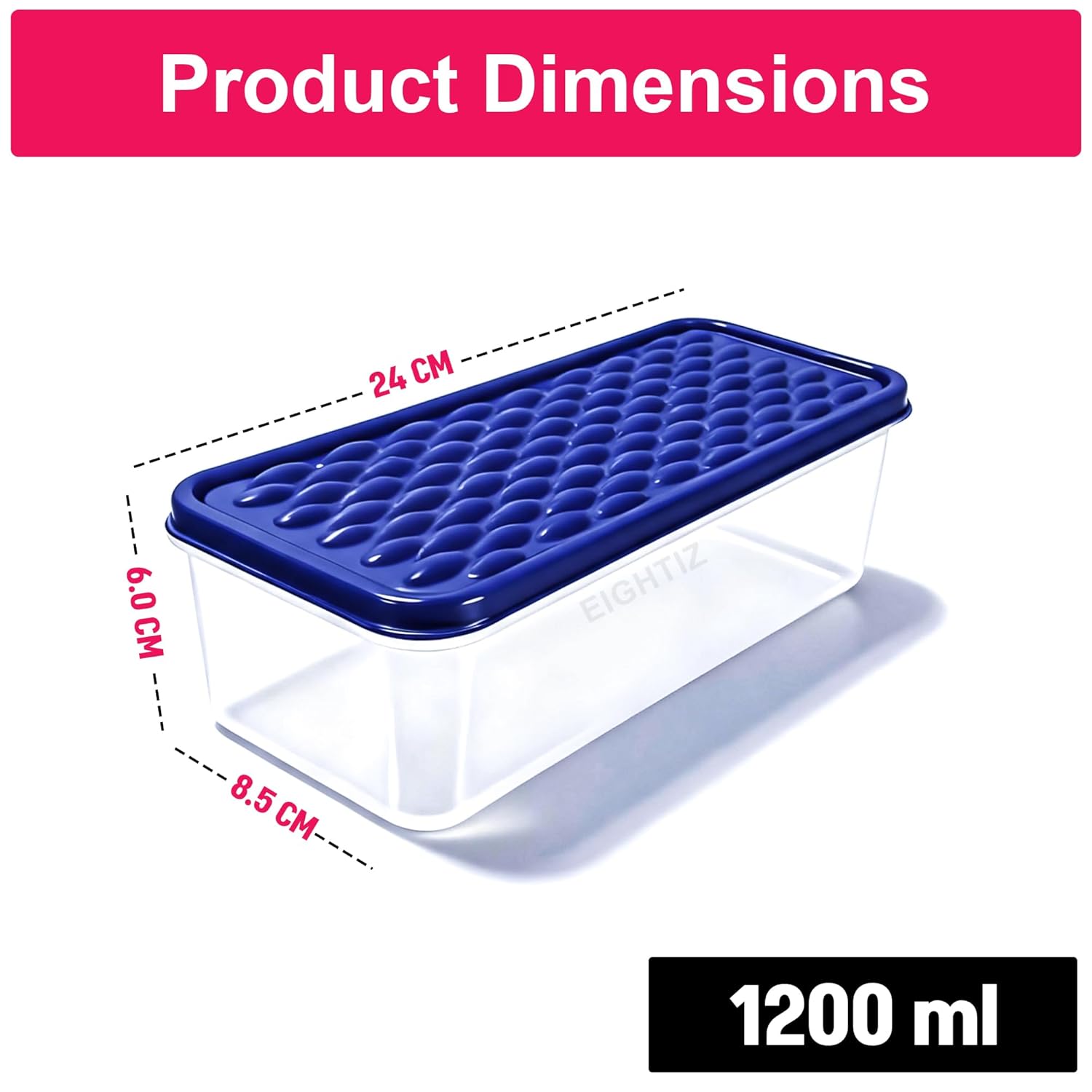 PREMIUM QUALITY & SAFE MATERIAL Made from high-grade, BPA Free, 100% food-safe plastic, Eightiz containers ensure your food stays fresh and healthy. These durable and non-toxic storage boxes are ideal for everyday kitchen use, offering long-lasting performance without odor or stains.