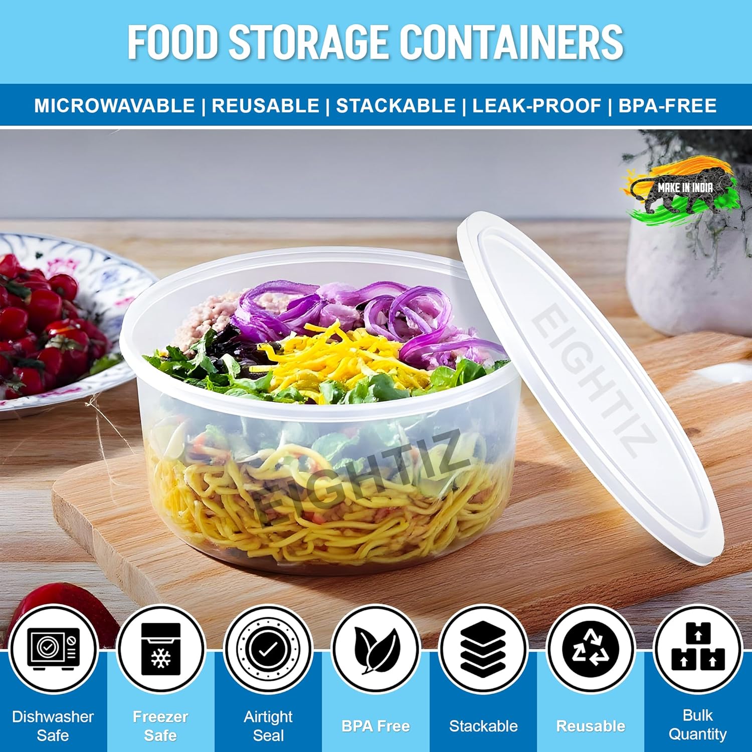Keep your kitchen clutter-free and your meals fresher with the Eightiz (Pack of 20) 500 ml Fridge Storage Boxes—a smart and convenient solution for storing, prepping, and transporting food with ease. Crafted from premium BPA-free plastic, these transparent containers are food-safe, durable, and built to handle everyday use in both refrigerators and freezers. Each container holds up to 500 ml, making them ideal for storing chopped fruits, vegetables, snacks, sauces, and leftovers. Their compact size allows for easy stacking in your fridge, lunch bag, or picnic basket, while the leak-resistant lids provide a mess-free, airtight seal—perfect for meal prep, office lunches, or weekly fridge organization. Designed with versatility in mind, these boxes are also great for food delivery, takeaway orders, and outdoor picnics. Whether you’re a busy home cook, a health-conscious meal planner, or a small business owner, this value pack of 20 containers delivers maximum convenience, hygiene, and storage efficiency. The crystal-clear body lets you view contents at a glance, helping reduce food waste and save time. Lightweight yet sturdy, these stackable boxes offer the perfect blend of functionality and space-saving design. Elevate your kitchen organization with Eightiz’s reliable and multipurpose food storage containers—your trusted companion for home, travel, and business use.